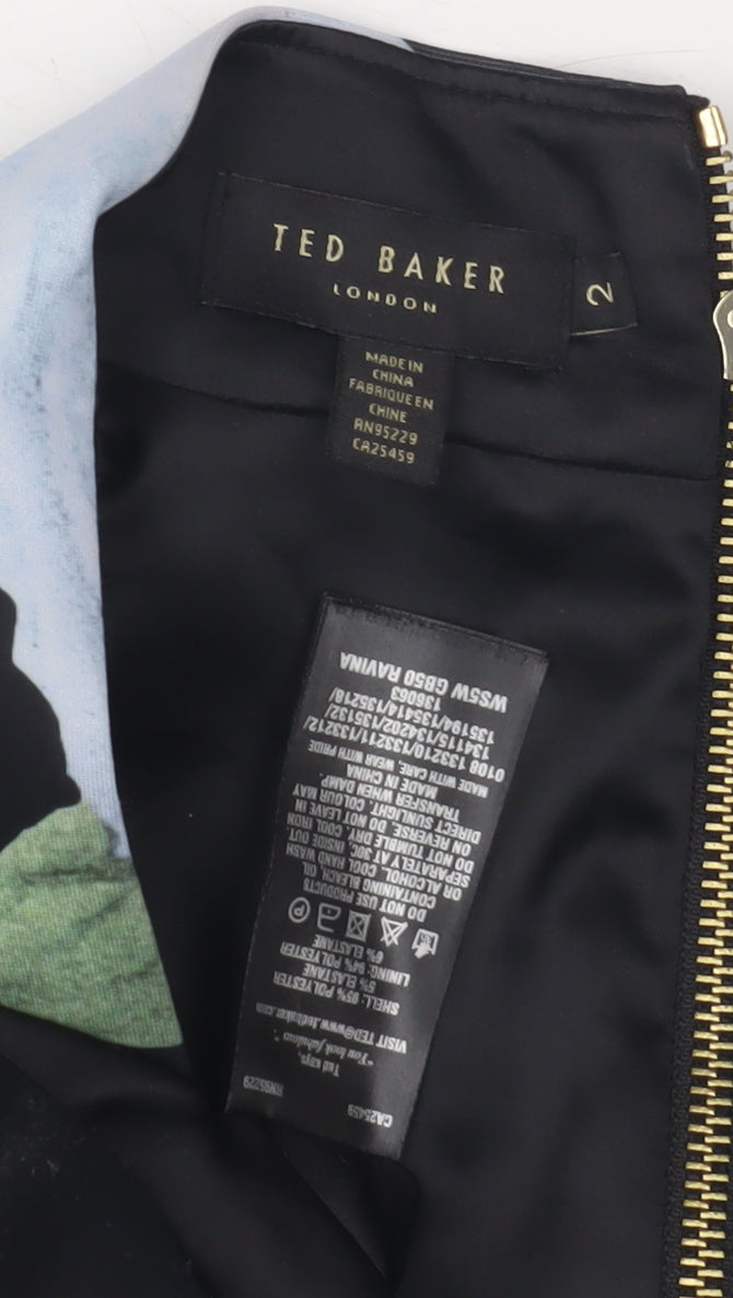 Discover the elegance of this Ted Baker sheath dress, perfect for cocktail parties and formal occasions alike. Crafted for the stylish woman, this knee length dress features a beautifully vibrant multicoloured floral pattern that makes it a standout choice. Designed with a flattering V-Neck, it showcases an impeccable fit that enhances your curves effortlessly. Made with a comfortable combination of 95% polyester and 5% elastane, the fabric offers slight stretch for a tailored feel. This sleeveless dress is machine washable, ensuring easy maintenance without compromising on quality. Positioned as an autumn and spring favourite, it becomes a versatile addition to your wardrobe that pairs beautifully with a chic clutch and heels. Excellent in condition with no visible wear, this regular size 8 dress is a lucrative choice for fashion-savvy individuals seeking style and comfort. Equipped with a zip accent for closure, this dress is an ideal choice for those who seek refined style with a touch of sophistication. Indulge in the vibrant world of luxury fashion with Ted Baker’s exquisite offerings.