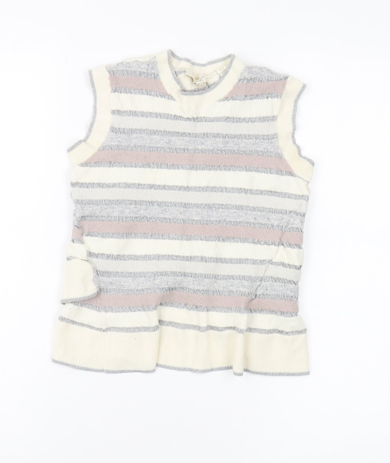 Step up your style game with this beautifully crafted Ted Baker jumper. Designed for the modern woman, it features a chic sleeveless design, perfect for layering or wearing alone. The jumper showcases a subtle yet eye-catching striped pattern in soothing multicolours, adding a touch of elegance to any outfit. Crafted with a luxurious blend of viscose, wool, polyamide, polyester, and cashmere, it ensures comfort and warmth, making it an excellent choice for various occasions. With its classic crew neckline and regular size fit, it's a versatile piece for your wardrobe. Ted Baker's quality craftsmanship is evident in every stitch, promising durability and a timeless appeal. Whether you're heading to a casual brunch or a day at the office, this jumper will see you through in style. Pair it with your favourite jeans or a skirt to complete the look. Don't miss out on this exceptional addition to your ensemble.