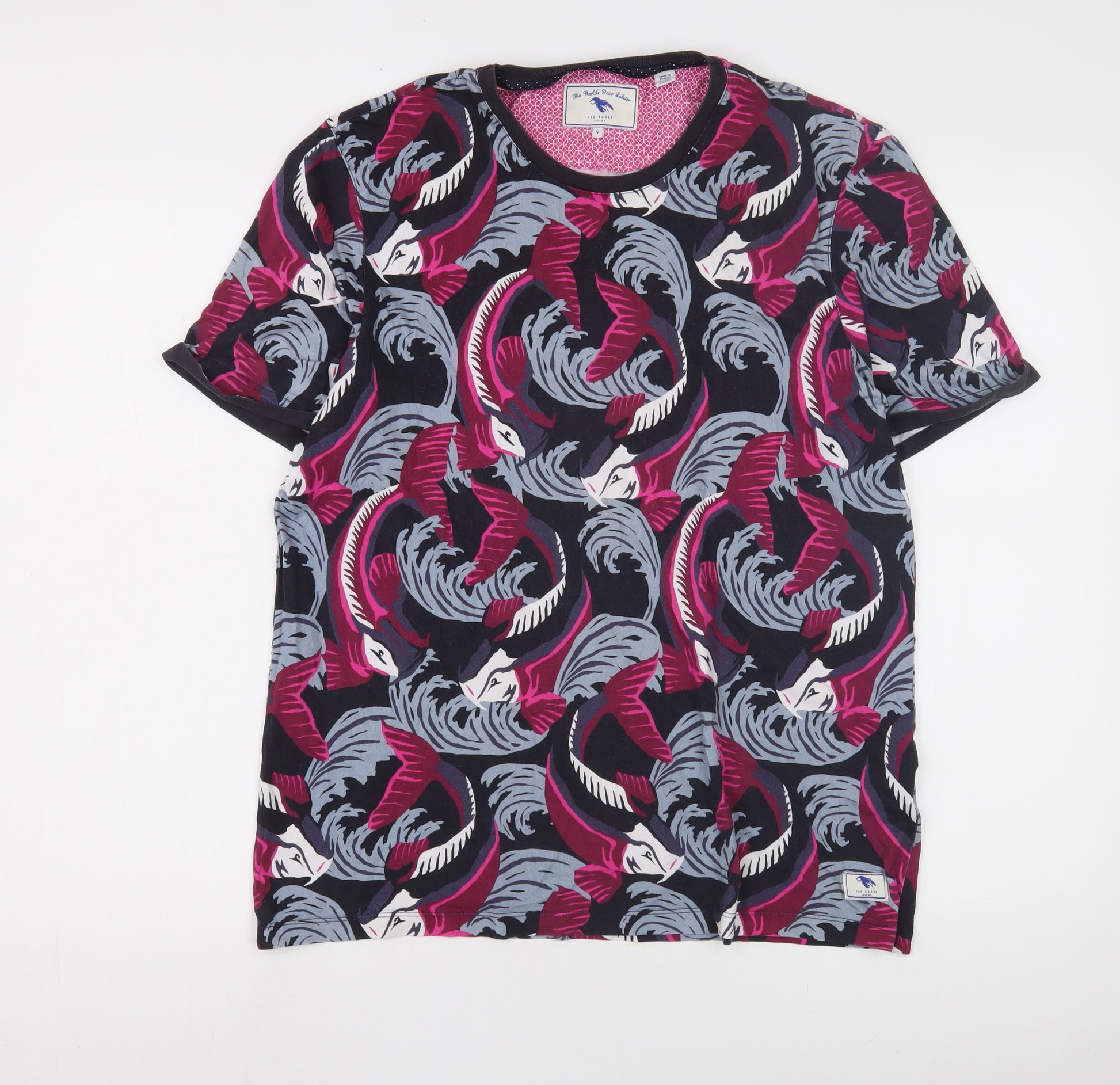 Step up your casual wardrobe with this vibrant Ted Baker Women's T-Shirt, size 12. Showcasing a stunning multicoloured geometric pattern, this piece is perfect for adding a splash of colour to your ensemble. Crafted from 100% cotton, it promises comfort and style, making it ideal for spring and summer outings. The crew neck design and classic short sleeves offer a relaxed fit that's both fashionable and convenient. A simple pullover closure ensures easy wear, making this T-shirt a go-to choice for casual occasions. While maintaining an easy-care approach with machine washability, this Ted Baker creation seamlessly blends practicality with aesthetics. Whether you're heading out for a casual meetup or a day of errands, this T-shirt's geometric flair will keep you looking effortlessly chic. Embrace your style with this unique piece from Ted Baker London and make every casual occasion a fashionable affair.