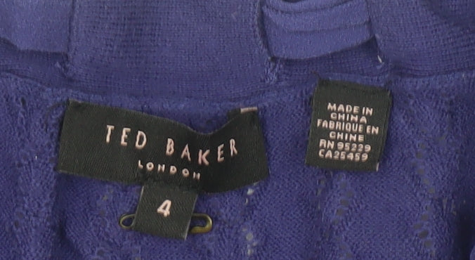 This elegant Ted Baker women's top combines a rich purple hue with intricate lace detailing to create a sophisticated and feminine piece. Crafted from premium 100% cotton, with exquisite silk trim accents, this top promises both comfort and luxurious style. Its short puff sleeves and V-neckline with tie accents add a unique touch to your wardrobe, making it perfect for various occasions. Whether pair it with your favourite jeans for a chic casual look or dress it up with a skirt for a night out, this top is versatile and sure to catch the eye. The condition is excellent, showing no visible signs of wear, and requires gentle hand washing to maintain its quality. Elevate your fashion game with this beautiful Ted Baker top, ideal for any modern woman looking to express her style. With a size 14 fit, it caters to those who appreciate a touch of elegance in their daily attire. Don't miss the opportunity to add this stunning lace piece to your collection.
