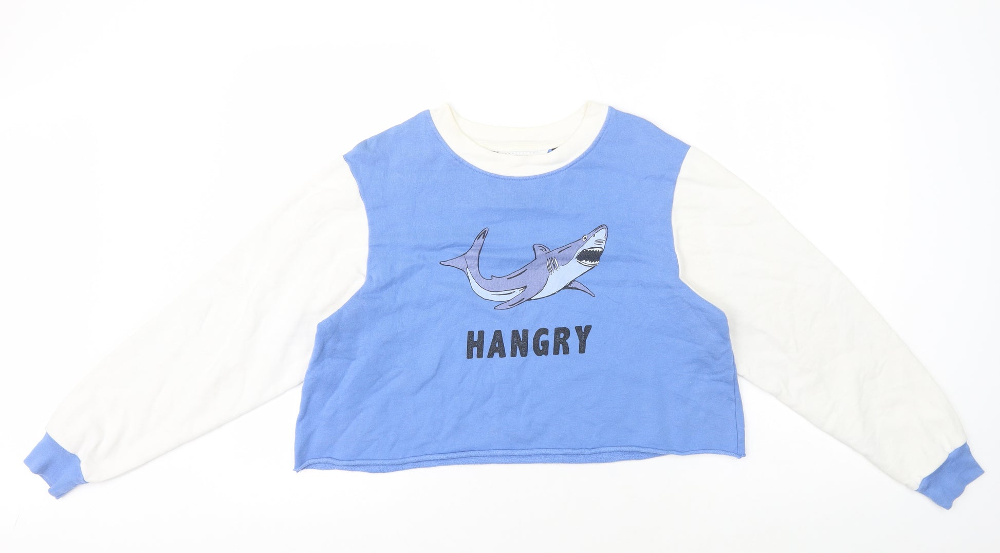 Womens Blue Cotton Pullover Sweatshirt Size 12 Pullover - Shark Graphic