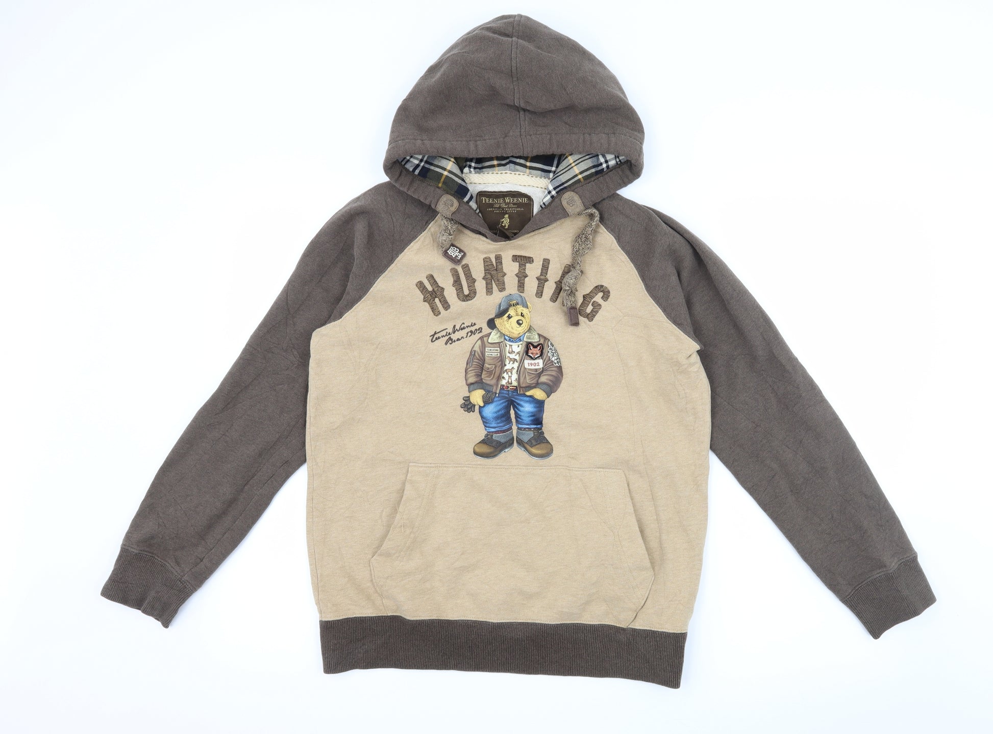 Boys Brown Jersey Pullover Hoodie Size M - Teddy bear