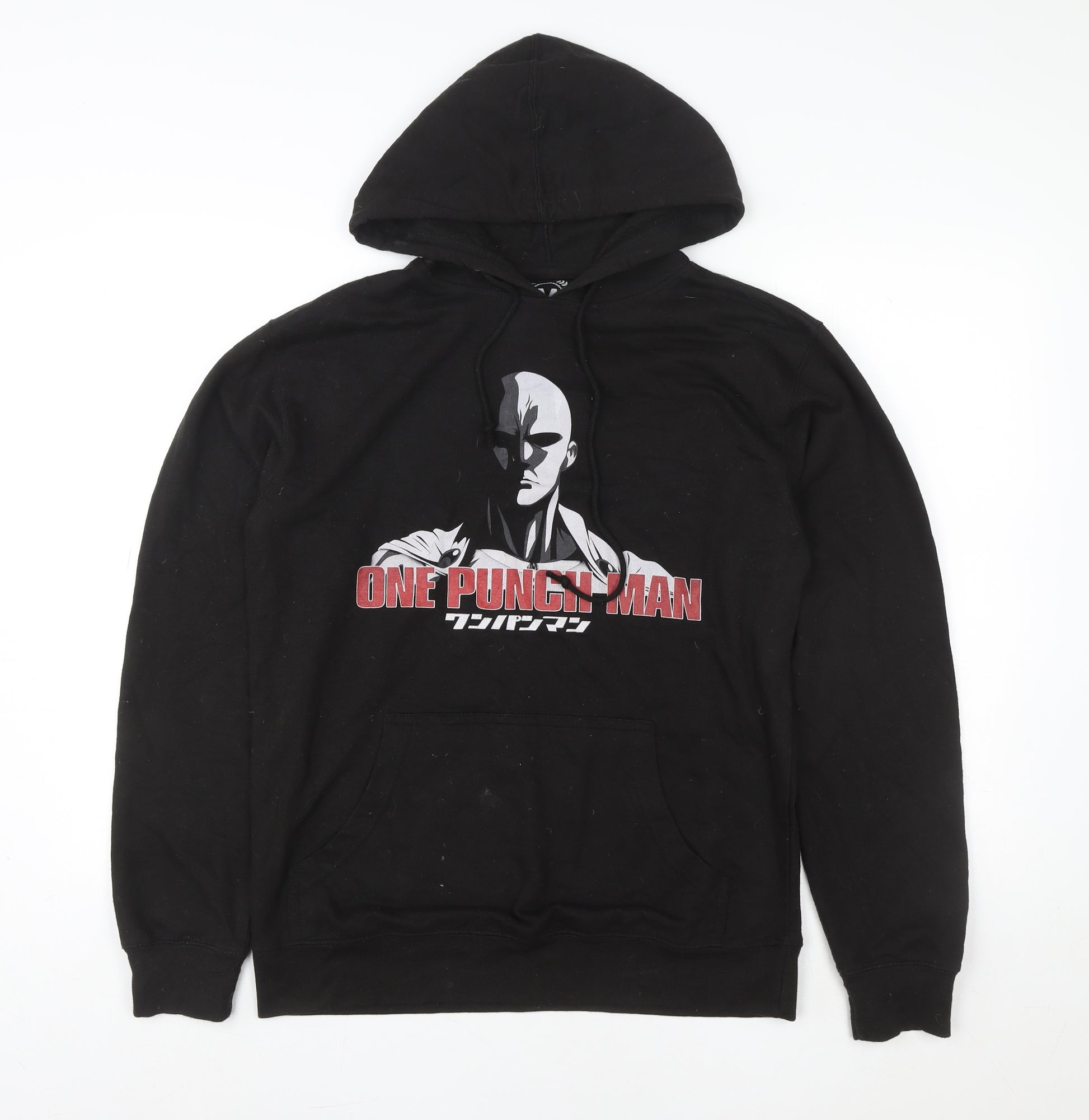Step out in bold style with this black pullover hoodie from TeePublic featuring a striking One Punch Man graphic across the chest. Designed with casual comfort in mind, this versatile piece blends popular anime culture with everyday wearability, making it perfect for fans of the show or anyone who appreciates statement streetwear. Crafted from a soft and durable 80% cotton and 20% polyester fleece, the hoodie provides warmth and breathability, ensuring year-round comfort. The pullover design with an adjustable drawstring hood and roomy front kangaroo pocket delivers both functionality and laid-back appeal. Ribbed cuffs and hem ensure a secure fit, while the relaxed cut flatters most body shapes, making it ideal for layering in cooler weather. Perfect for autumn through spring, this men’s regular fit hoodie embraces durability without compromising on softness. Its easy-care machine washable fabric makes maintenance simple, while the anime-inspired print adds an eye-catching focal point. Whether worn for casual outings, lounging, or outdoor adventures, this comfortable hoodie ensures warmth and style in equal measure. In very good used condition, it shows only light lint and minor wear consistent with minimal previous use. The vivid print remains intact, and the fabric still holds its original shape and colour. A perfect choice for anime lovers and collectors looking for a quality, comfortable wardrobe staple. Add a touch of personality to your casual wardrobe with this TeePublic One Punch Man black hoodie — a blend of comfort, fandom, and streetwear flair that’s ready to keep you cosy on any cool day.