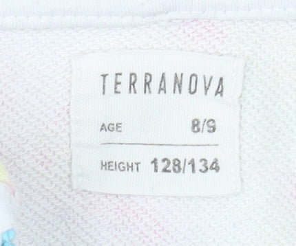 Brighten up your little one’s wardrobe with this cheerful Terranova girls’ tie dye zip hoodie jacket in size 8-9 years. Crafted from a soft and comfortable blend of 54% cotton and 46% polyester, this lightweight jacket is ideal for spring and summer wear. The lively multicoloured tie dye pattern in shades of pink, yellow, and blue makes it a fun and fashionable choice for everyday casual outfits or weekend adventures. Featuring a practical full front zip closure in contrasting blue, this hoodie provides easy wear and stylish detail. The attached hood adds extra comfort and protection against breezy days, while the front kangaroo pockets provide space for little essentials or to keep hands cosy. Ribbed cuffs and hem ensure a snug fit, maintaining both warmth and durability through regular wear. This piece captures a breezy, happy aesthetic, perfect for pairing with jeans, leggings, or casual skirts for versatile styling. The breathable cotton-blend fleece fabric ensures softness against the skin, making it ideal for daily wear, school, or outdoor play. In very good used condition, showing minimal signs of wear with no stains, rips, or fading, it’s ready to add some colour and joy to your child’s outerwear collection. Whether it’s for a spring day at the park or a light cover-up on cooler summer evenings, this Terranova hoodie combines comfort, colour, and charm effortlessly. A delightful and affordable addition to any young girl’s wardrobe that offers both style and practicality.