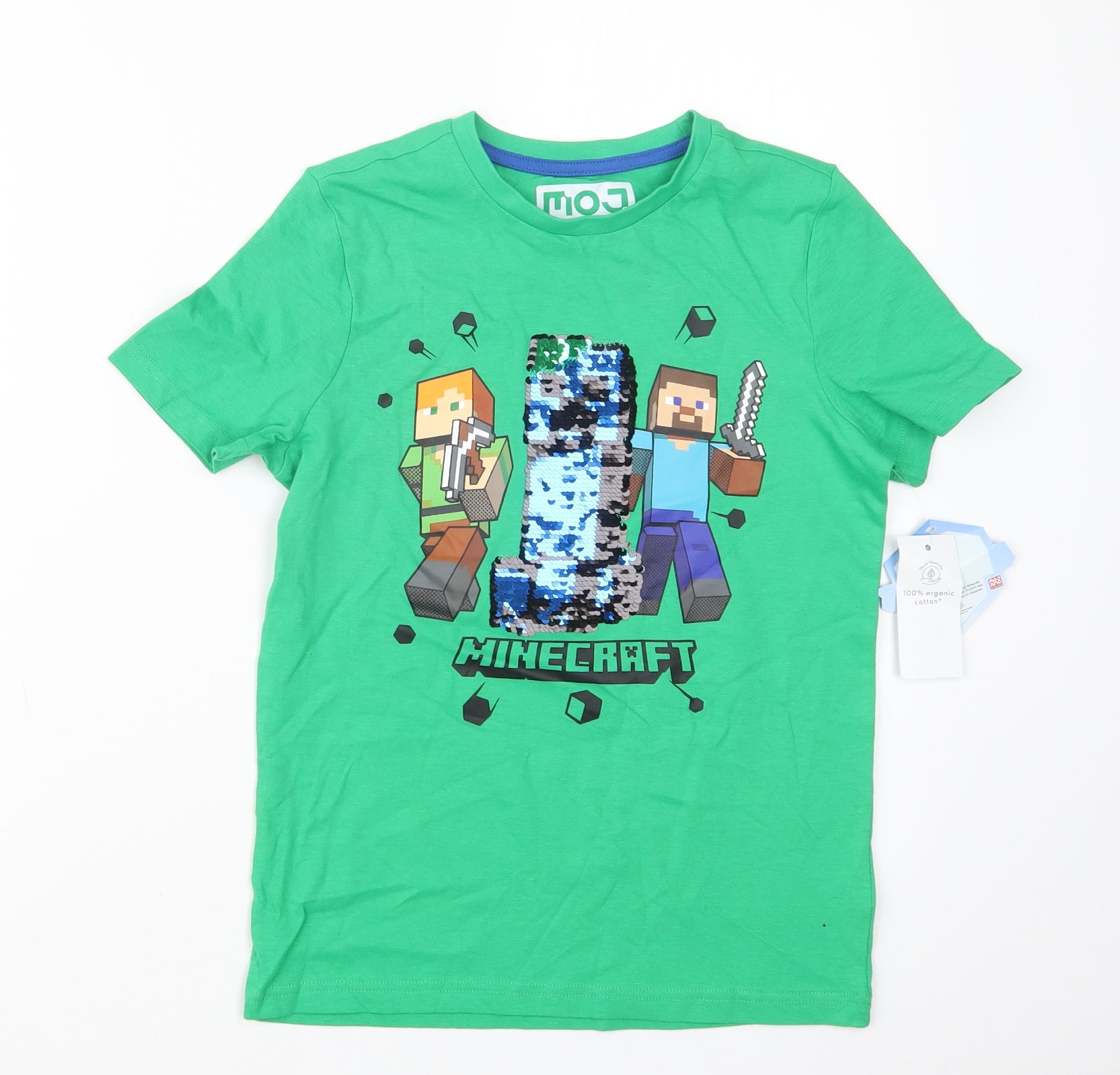 Boys Green Basic T-Shirt Size 8-9 Years - Minecraft