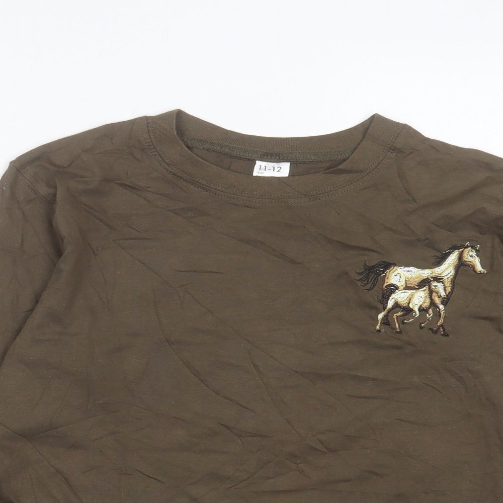 Boys Green Cotton Basic Casual Size 11-12 Years Crew Neck Pullover - Horse