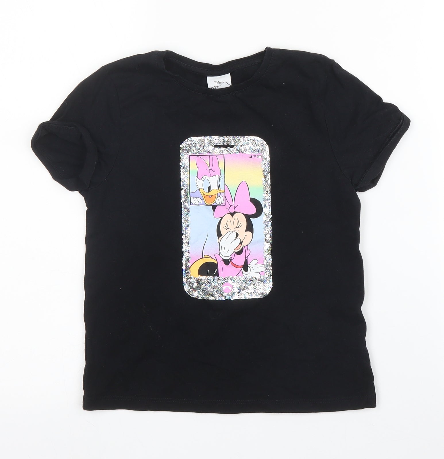 Girls Black Cotton Basic T-Shirt Size 6 Years Round Neck - Disney, Minnie Mouse