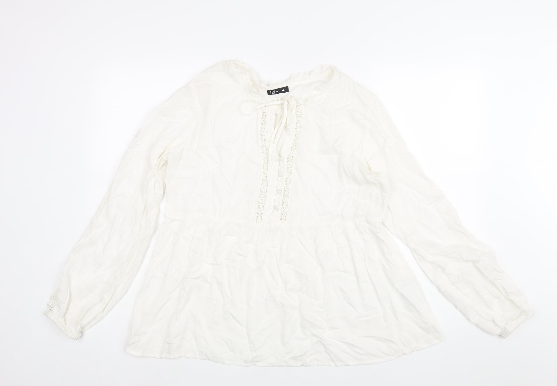 Womens White Polyester Basic Blouse Size XL Round Neck - Button Detail Lace Trim