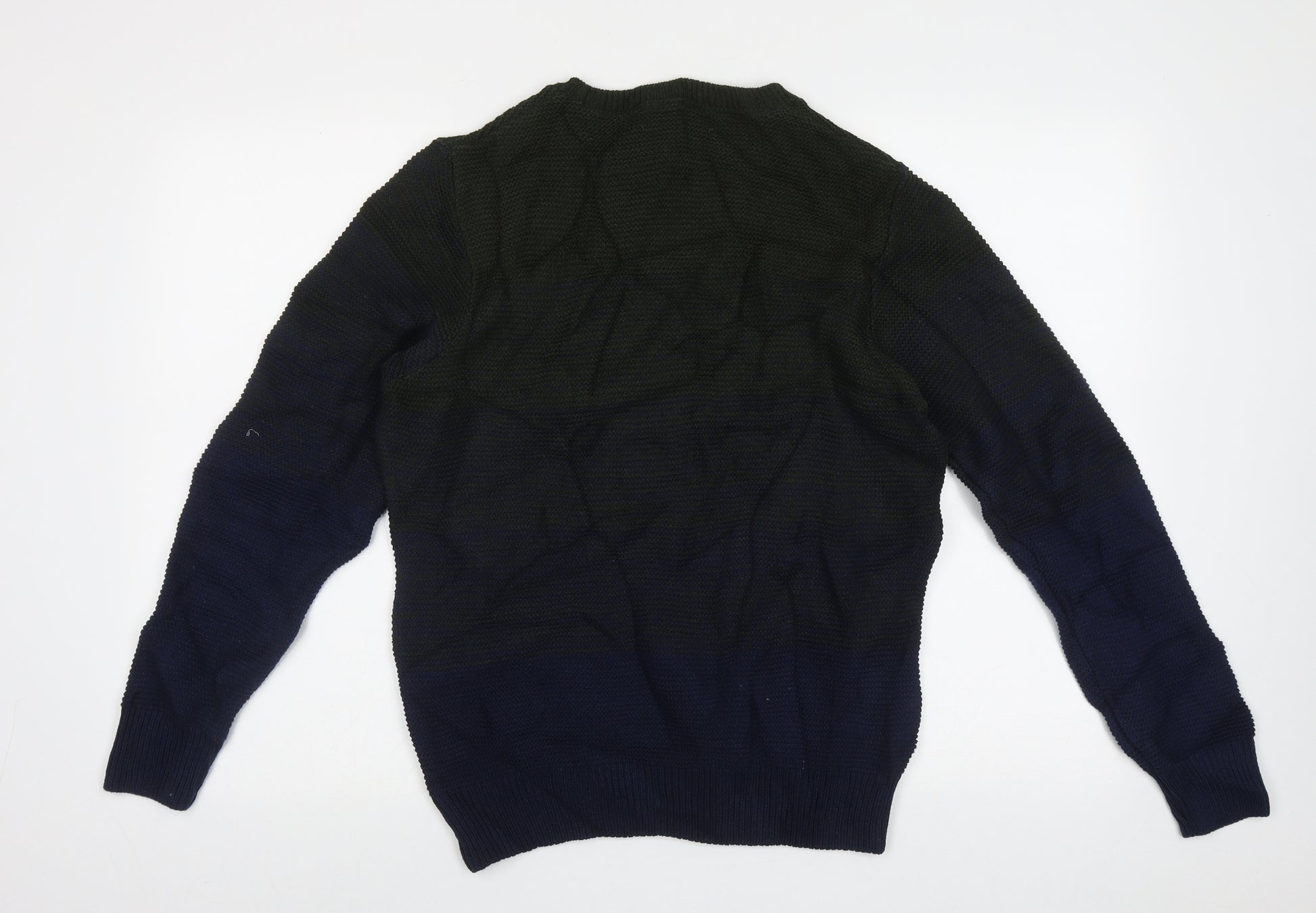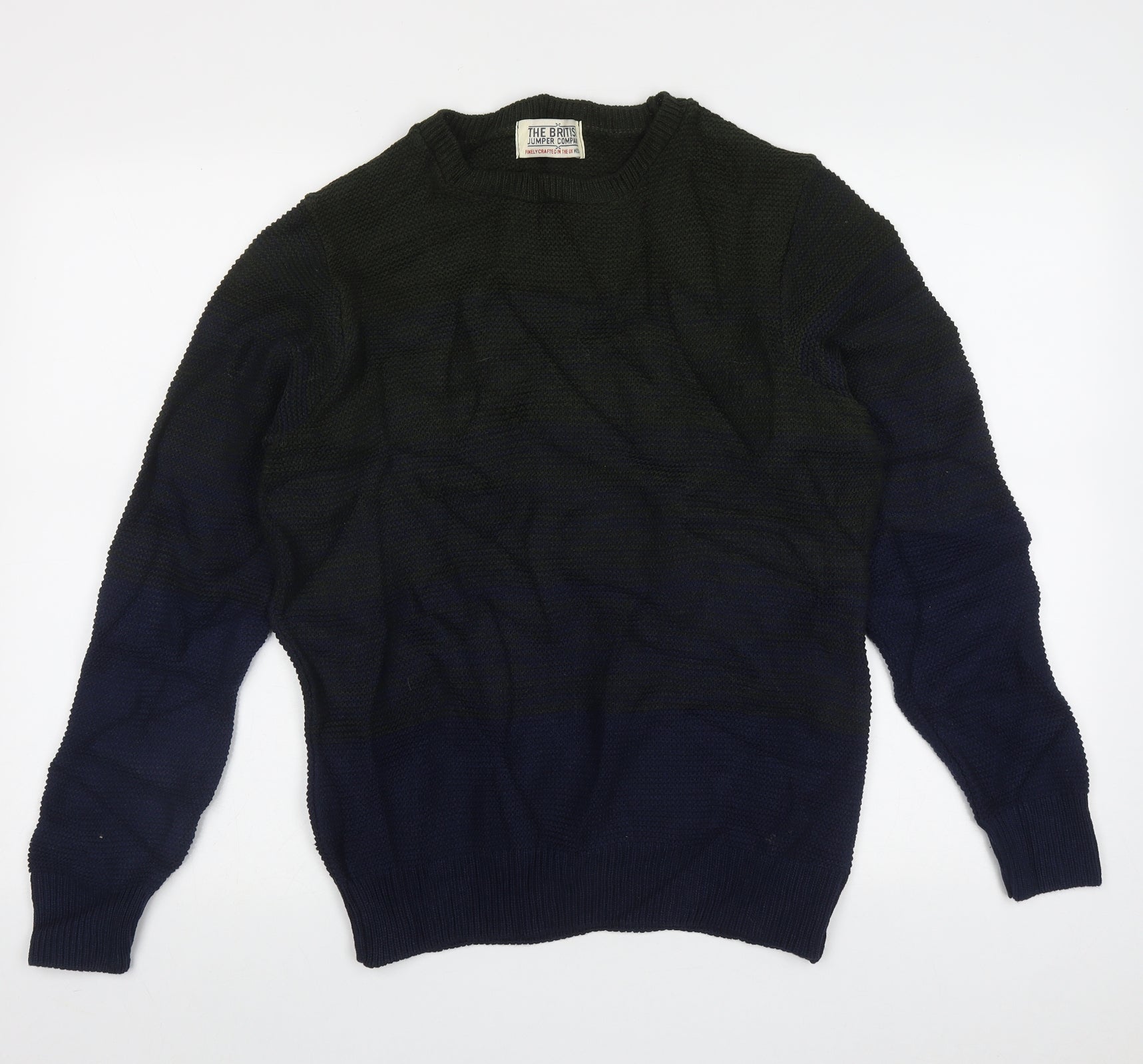 Mens Blue Crew Neck Geometric Cotton Pullover Jumper Size M