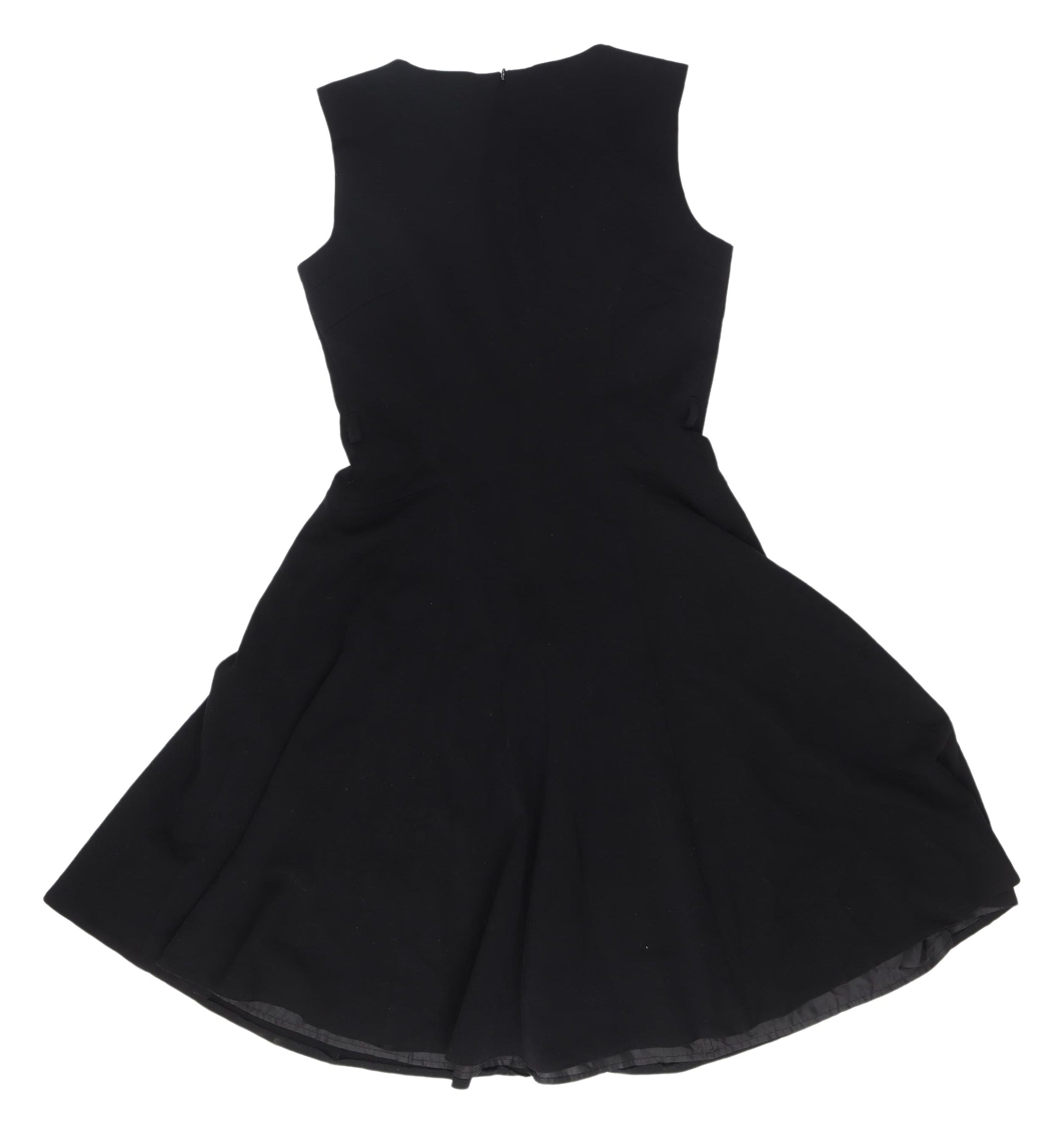 Discover elegance and versatility with this exquisite black fit & flare dress from The Collection Debenhams, tailored for women who appreciate style and comfort. This sleeveless dress, in a classic shade of black, is perfect for both casual outings and cocktail parties, providing an effortless transition from day to evening wear. Crafted with a blend of polyester, viscose, and elastane, the dress offers a soft woven fabric that ensures a flattering fit while allowing ease of movement. The round neckline adds a timeless touch, making it suitable for various occasions. The zip closure at the back enhances the dress's sleek design while ensuring a secure fit. With its machine washable fabric, maintaining the dress's pristine condition is a breeze, making it an ideal addition to any wardrobe. Despite being pre-owned, it remains in excellent condition with no visible flaws, offering you high-quality fashion at a great value. Embrace the elegance and simplicity of this dress and become the centre of attention wherever you go!