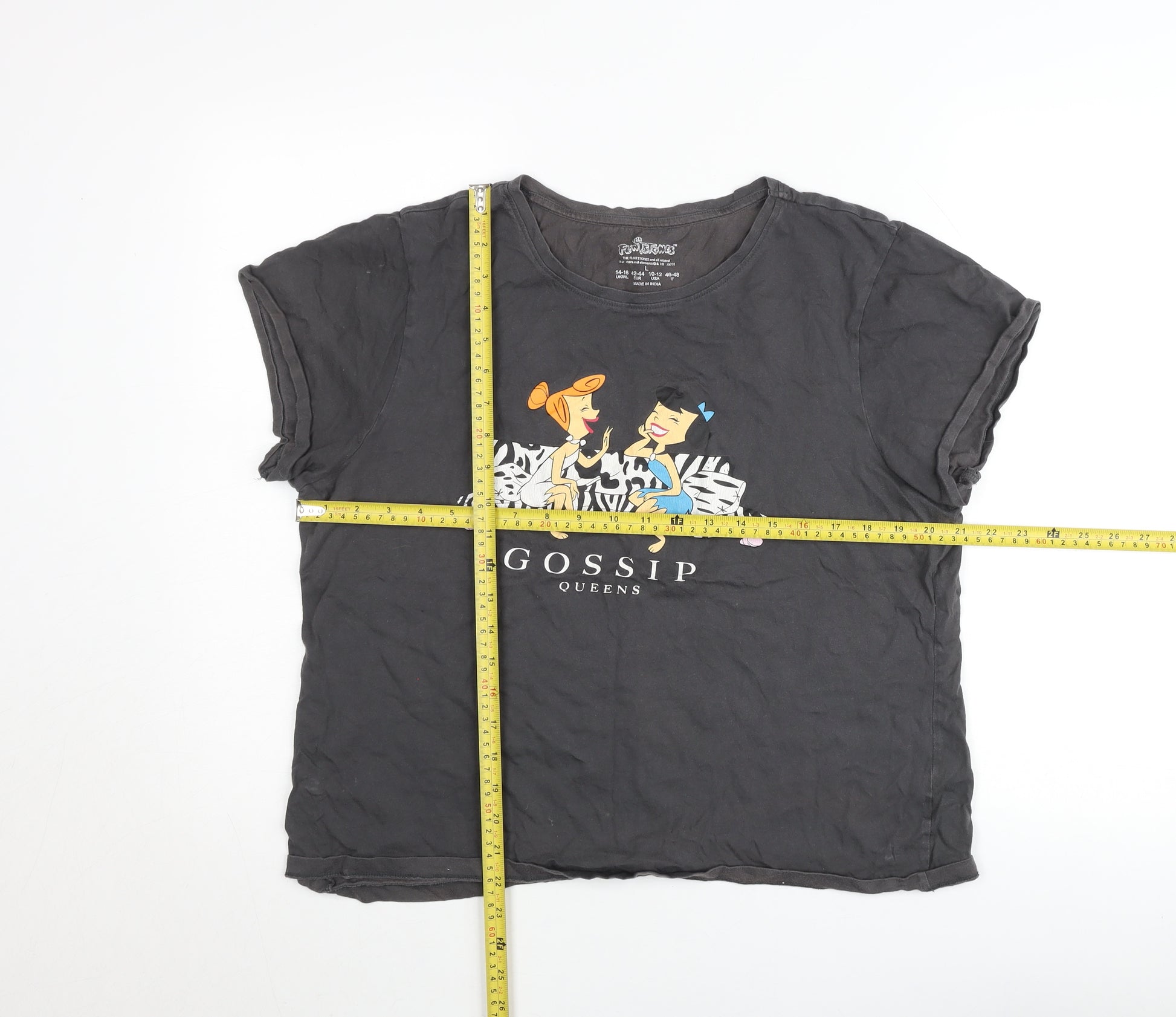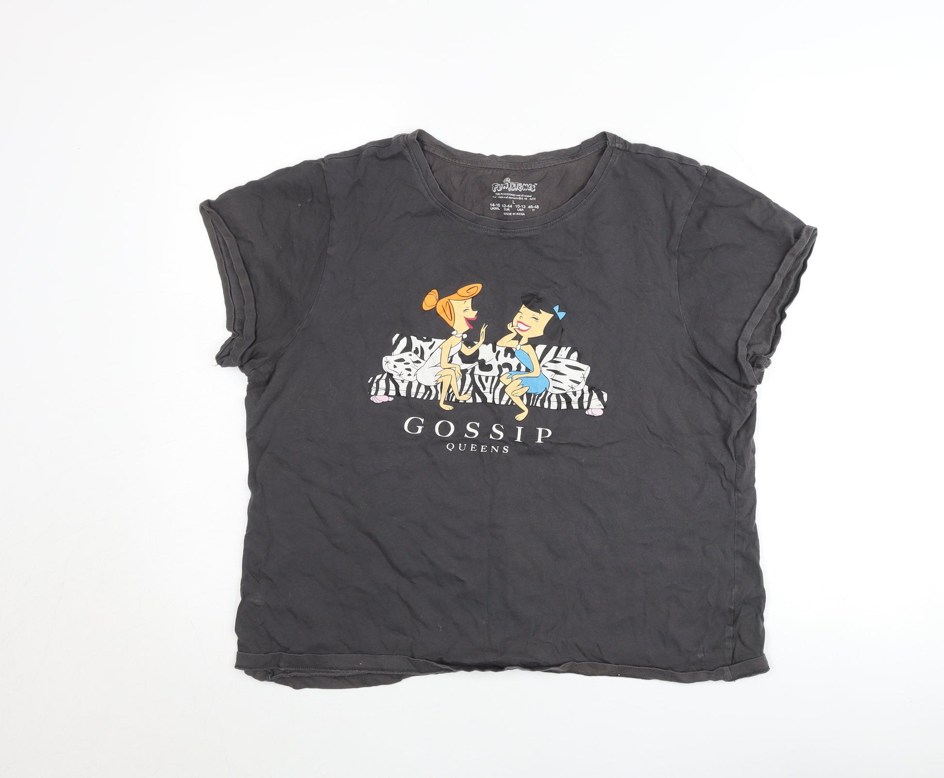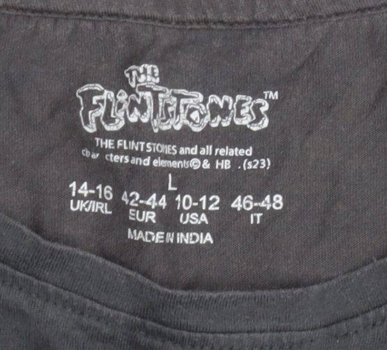 Step back into prehistoric style with this ‘The Flintstones’ Girls Black Graphic T-Shirt featuring a fun ‘Gossip Queens’ print. Made from 100% cotton, this comfortable short sleeve tee is soft, breathable, and perfect for casual wear. The playful artwork on the front showcases Wilma Flintstone and Betty Rubble, adding a nostalgic and light-hearted touch that any fan of classic cartoons will adore. Designed with a crew neckline and a regular fit, this T-shirt offers easy everyday styling, ideal for pairing with jeans, shorts, or skirts. The fabric is lightweight and machine washable, making it a practical choice for school, leisure or weekend play. Measuring approximately a UK Girls’ size L (14-16), it provides a relaxed, comfortable fit that lets kids move freely while showing off their unique cartoon-inspired fashion sense. The high-quality cotton construction ensures durability and long-lasting wear, while the dark wash and printed accents give it a modern yet vintage-inspired charm. Although this tee is pre-loved, it remains in very good condition with no notable damage, maintaining its bold and fun design. A great addition for collectors or anyone who loves The Flintstones, this shirt brings a lively, cheerful vibe to any casual outfit. Perfect as a gift or a statement piece for everyday wear, this ‘Gossip Queens’ top celebrates friendship, fun, and timeless cartoon nostalgia in one easy-wearing piece. Don’t miss the opportunity to own a stylish and comfortable T-shirt that combines classic pop culture with modern appeal—ideal for young fans who enjoy stories full of laughter and imagination. Embrace the charm of Bedrock with this standout tee that will surely become a favourite in any girl’s wardrobe.
