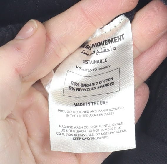 Refresh your off-duty and activewear essentials with these premium black jogger trousers from The Giving Movement. Expertly crafted from 95% organic cotton blended with 5% recycled elastane, they offer a luxuriously soft touch while ensuring stretch and flexibility for ease of movement. The sustainable fabric and ethically made design support comfort and responsible fashion choices, proudly manufactured in the UAE with charitable support for every purchase. Designed with a mid-rise elasticated waistband, these joggers provide a secure yet comfortable fit ideal for a range of activities. The sleek black tone adds a versatile edge, effortlessly pairing with your favourite hoodies, T-shirts, or gym tops. A minimalist aesthetic and subtle logo patch highlight a modern, athletic style suited to both laid-back weekends and workouts. Lightweight and breathable, the jersey construction promotes all-day wearability, making these trousers a seasonal staple through spring, autumn, and winter alike. Their soft interior and flexible tapered leg design lend themselves to lounge comfort or moderate exercise regimes such as yoga, gym training, or running. With a focus on function and fashion, the trousers also feature practical pockets for storage and a contemporary silhouette that flatters the regular fit. Meticulously maintained, this pre-owned piece remains in very good condition with only minor signs of light lint from wear, showing thoughtful use but no damage or significant flaws. Perfect for those who appreciate quality athleisure with a conscious purpose, these joggers embody the brand’s sustainable ethos and everyday comfort. Whether you’re tackling an early morning workout or relaxing at home, The Giving Movement joggers merge simplicity, ethics, and performance into one essential addition to your activewear wardrobe.