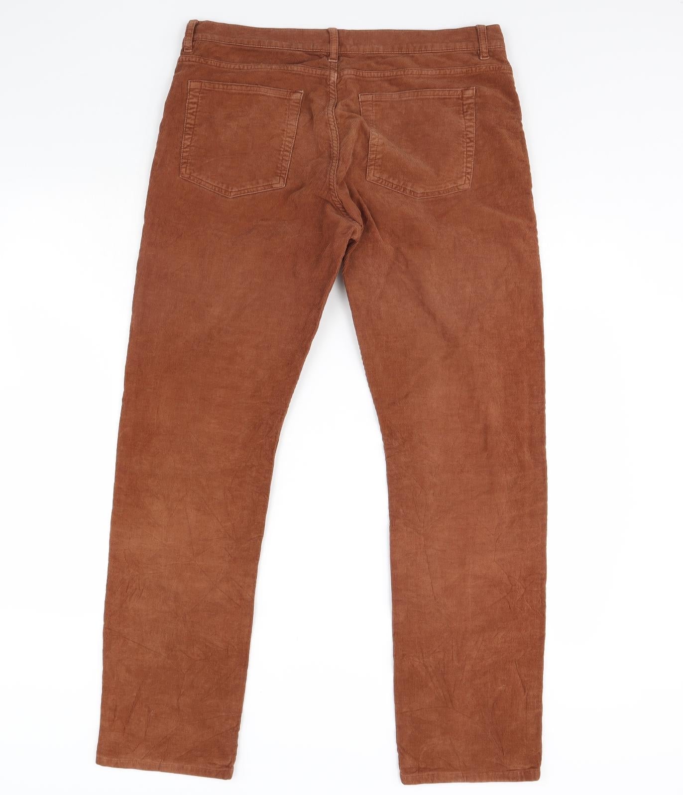 Mens Brown Corduroy Trousers Size 32 in L30 in