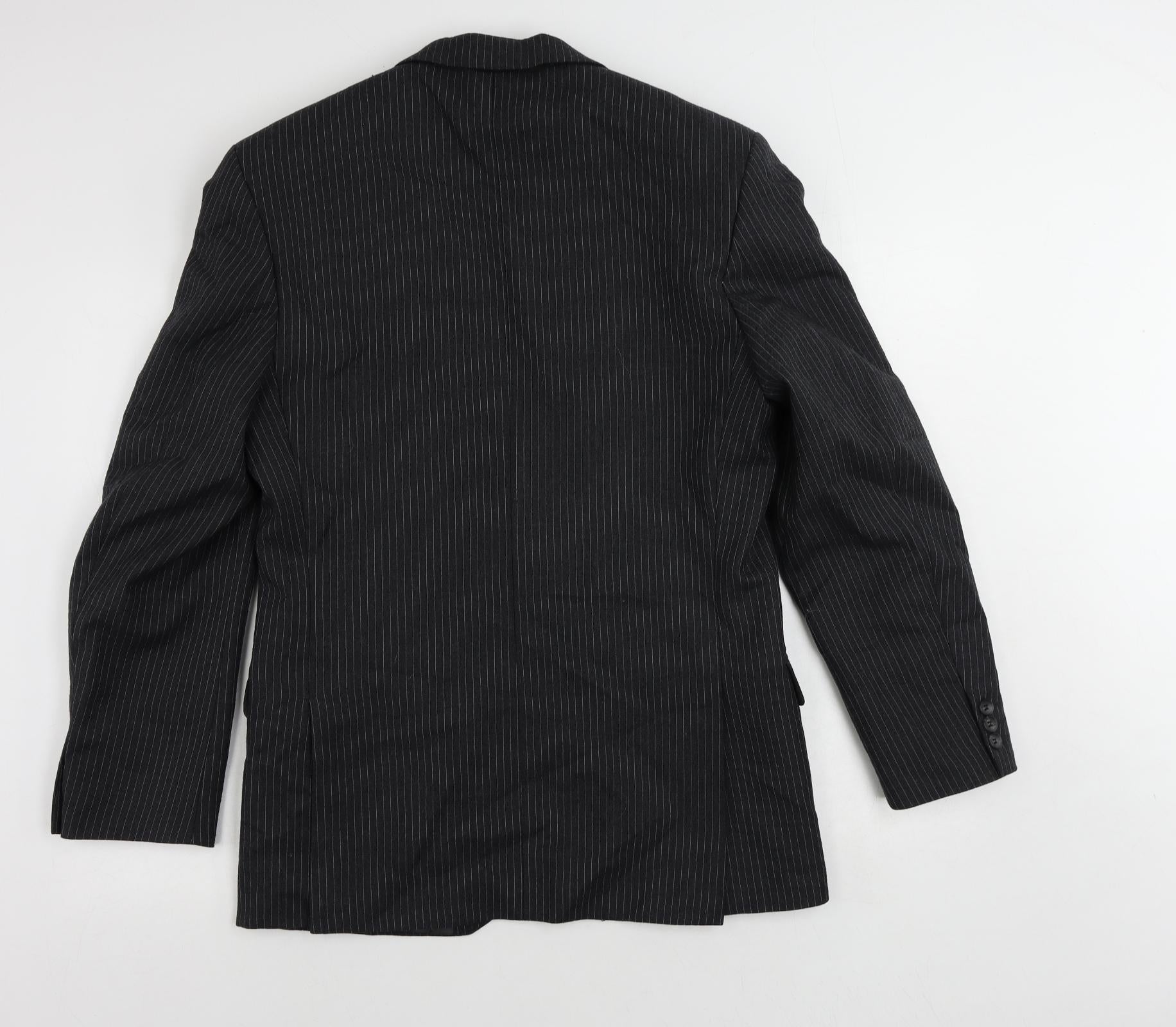Mens Grey Striped Wool Jacket Suit Jacket Size 38 Regular