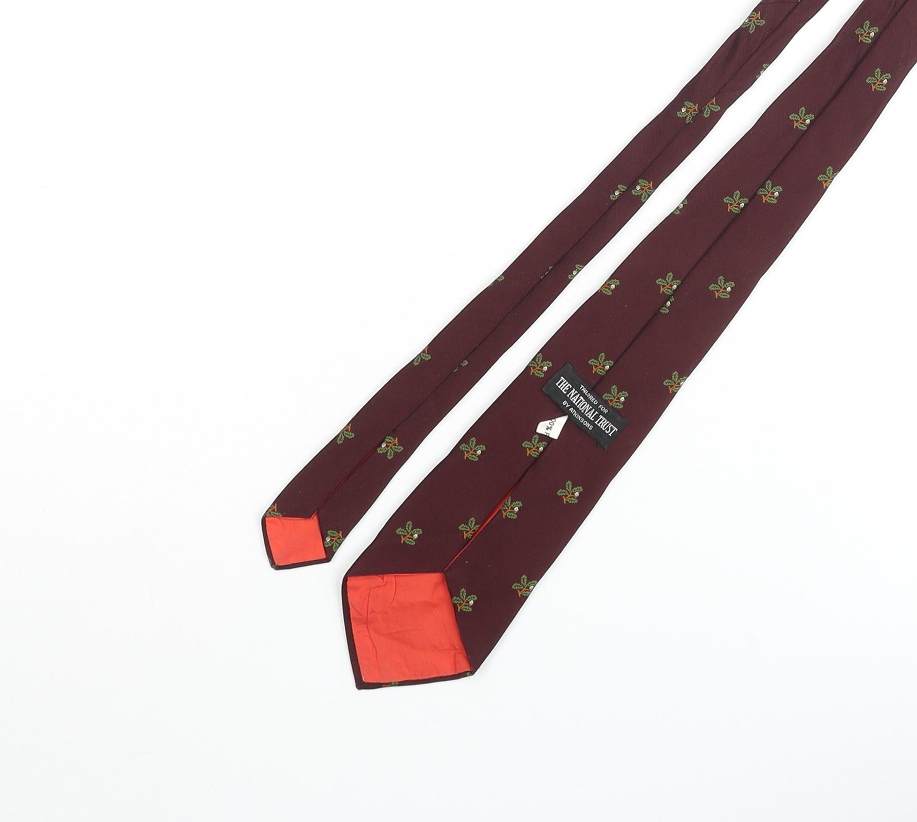 Mens Red Geometric Polyester Pointed Tie One Size - Leaf Print
