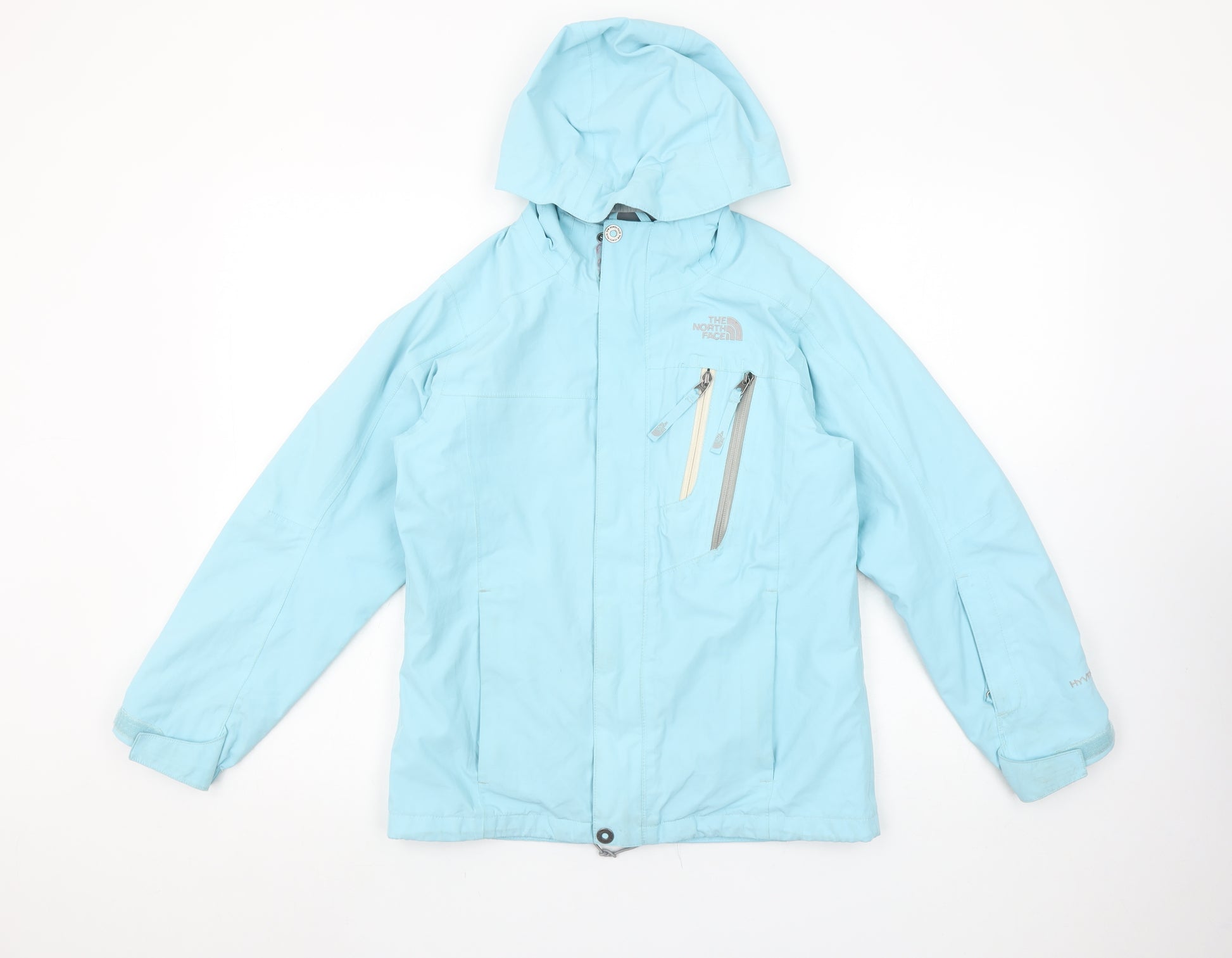 Keep her warm and dry whatever the weather with this The North Face Girls Blue Waterproof Hooded Rain Jacket. Designed with practicality and comfort in mind, this mid-length jacket is ideal for outdoor adventures, school days, and everyday casual wear. Made from a durable 100% polyester outer shell and a smooth 100% nylon lining, it provides reliable protection against rain and wind while maintaining breathability and comfort. The softshell construction ensures a comfortable fit and ease of movement for active days. The jacket features a full front zip fastening for easy wear, adjustable cuffs to keep out the chill, and a secure hood for added weather protection. Multiple zip pockets, including a chest and two hand pockets, offer space for essentials while on the go. Finished in a pretty light blue shade with the signature The North Face logo on the chest and back, it adds a stylish, sporty touch to any outfit. Ideal for autumn, winter, and spring seasons, this jacket is suitable for both travel and casual outdoor wear. Its functional waterproof and wind-resistant features make it perfect for hiking, walking, or everyday school use. In excellent pre-owned condition, this jacket shows only light signs of wear, with no major flaws or damage. A trustworthy and stylish piece for keeping your little one comfortable and protected year-round. Machine washable for easy care and long-lasting wear, this The North Face jacket combines durability, weather resistance, and effortless style in one essential outerwear piece. A must-have investment for any active girl’s wardrobe.
