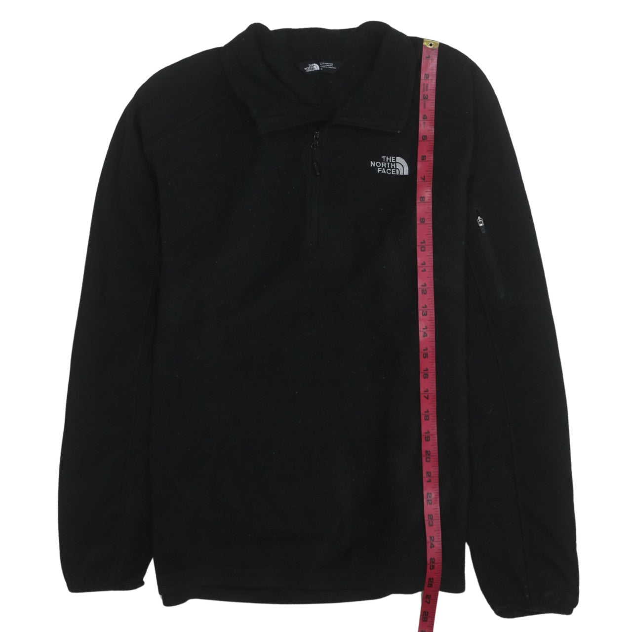 Stay warm and comfortable in this The North Face men’s black fleece pullover sweatshirt. Crafted with premium Polartec recycled fleece fabric, this sustainable design balances warmth and breathability, making it ideal for cool-weather outdoor activities. The 1/4 zip closure and high neck design help regulate your temperature during hikes, runs, or everyday wear, while the soft fleece construction ensures lasting comfort. The regular fit allows freedom of movement without bulk, and the elasticated cuffs keep warmth locked in for all-day coziness. The chest features a signature embroidered The North Face logo, adding a touch of classic outdoor style. Designed with performance in mind, this versatile sweatshirt is perfect for layering under a jacket during winter or wearing solo on brisk autumn mornings. Its lightweight yet insulating properties make it an ideal choice for hiking, skiing, running, and gym & training sessions. Including a secure zip pocket on the sleeve, it combines function and style effortlessly. With its durable polyester and elastane blend, the sweatshirt maintains shape retention and flexibility wash after wash. Suitable for autumn, winter and spring seasons, its moisture-wicking fleece construction keeps you dry and warm in varying weather conditions. The black colourway enhances its timeless appeal, making it a staple piece for modern adventurers and casual wearers alike. This pre-owned sweatshirt is in excellent condition with only minimal signs of light wear, offering great value while maintaining the quality and reputation of The North Face’s outdoor heritage. Upgrade your wardrobe with dependable warmth, technical performance, and classic styling that suits both outdoor pursuits and everyday comfort.