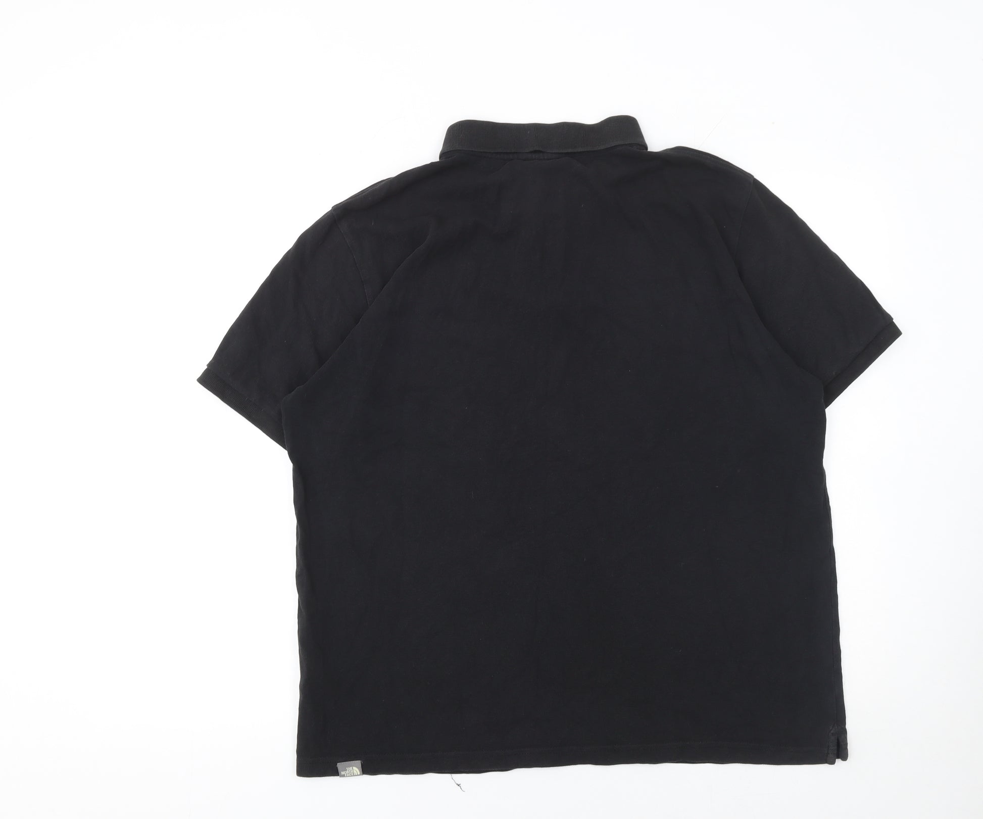 This The North Face men's black polo shirt is a timeless casual piece designed for everyday comfort and versatility. Crafted from 100% cotton, the soft and breathable jersey fabric ensures relaxed wear in any setting, whether you’re heading outdoors, meeting friends, or enjoying a laid-back day at home. Styled with a traditional collared neckline and a classic three-button placket, this polo offers a neat and polished appearance that balances smart and sporty appeal. The black colourway provides a sleek, versatile foundation that pairs effortlessly with jeans, chinos, or shorts, making it ideal for casual and semi-active occasions alike. The shirt features an embroidered The North Face logo on the chest, adding a subtle touch of brand authenticity. With its regular fit and short sleeves, it allows freedom of movement and breathability—perfect for transitional weather in spring, summer, or autumn. While the polo shows light signs of wear, including a small faint mark on the front, it remains in very good overall condition, ensuring many more wears to come. The machine washable fabric makes maintenance easy, and the durable construction means it will hold up well for repeated use. A great choice for men who value quality, practicality, and understated style, this The North Face polo brings together outdoor capability and everyday fashion. Its simple yet iconic design reflects the dependable character of The North Face brand. Combining comfort and durability, this piece stands as a wardrobe essential for the modern, active lifestyle. Pair it with chinos for a smart casual look or with shorts for outdoor adventures — a must-have piece that blends comfort, performance, and effortless style in one reliable everyday staple.