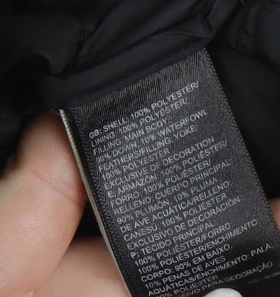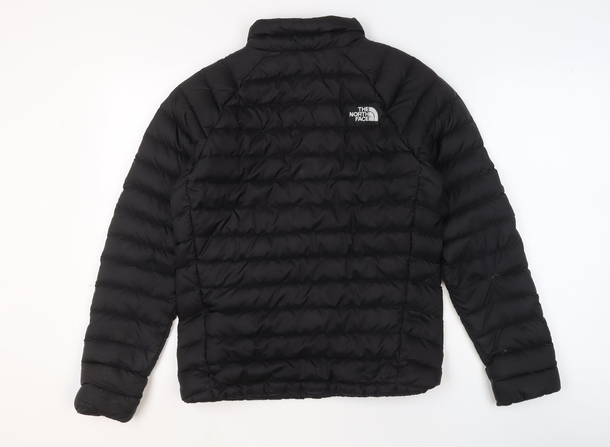 Stay warm and stylish with this high-quality The North Face men's black puffer jacket, designed for comfort and performance. Crafted from 100% polyester, the outer shell offers durability while maintaining a lightweight feel. The jacket features a smooth polyester lining that enhances insulation and comfort, perfect for keeping out the chill during autumn and winter months. The padded design provides warmth without the bulk, making it ideal for outdoor activities like hiking, walking, and running, or for everyday casual wear. The signature The North Face logo on the chest and back adds authenticity and a premium touch to its sleek appearance. Practical features such as the full zip closure and two zipped side pockets offer both convenience and functionality, giving you a secure space to store your essentials. The stand-up collar lends additional protection from wind and cold, while the quilted design ensures a contemporary, athletic look that pairs effortlessly with jeans or outdoor gear. Although pre-owned, this jacket remains in good condition, with a small repaired area on the rear shoulder, as shown in the images, which does not affect wear. Perfect for those seeking reliable warmth and timeless design from a trusted brand. Ideal for casual outings, commutes, or travel, this jacket combines practicality with iconic outdoor styling. Don't miss the chance to own a versatile and dependable piece from The North Face that continues to deliver both comfort and durability season after season.