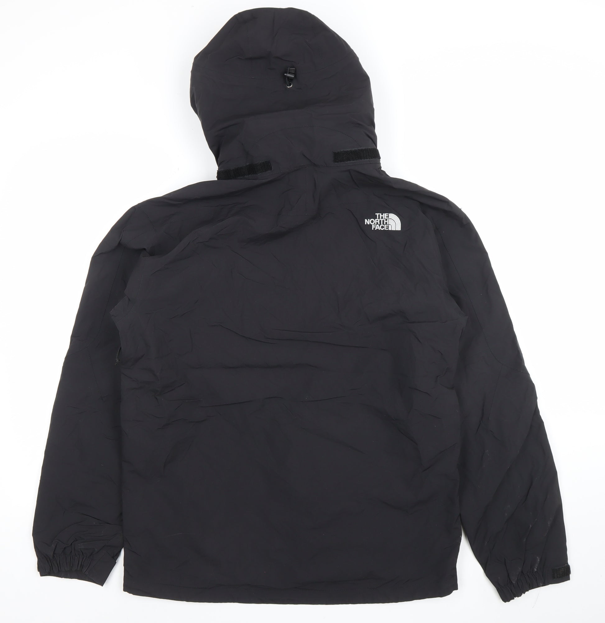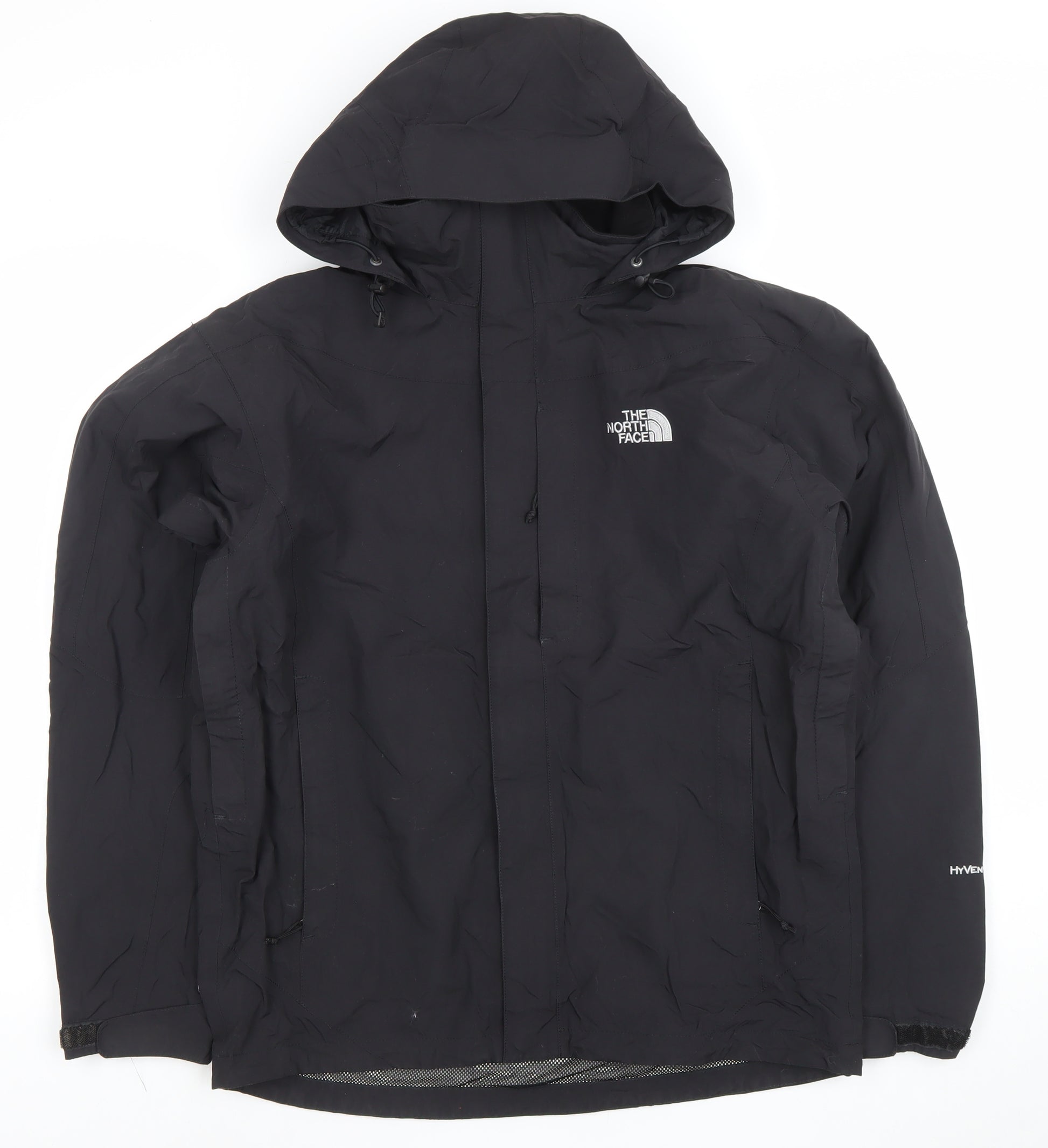 Step out in reliable protection with this The North Face men's black waterproof hooded jacket, designed for outdoor performance and everyday versatility. Crafted from durable 100% nylon with a microfibre texture, this jacket ensures a lightweight yet weatherproof outer layer that will keep you dry and comfortable through rain and wind. Featuring the brand’s signature HyVent technology, this piece excels in breathability while maintaining full waterproof performance, ideal for hikes, weekend travel, or your daily commute. The mesh polyester lining adds comfort and improved ventilation, while the adjustable hood and full front zip closure offer functionality and adaptability in unpredictable weather. With thoughtful details such as zipped side pockets for secure storage and adjustable hook-and-loop cuffs for fit, this jacket combines practicality with The North Face’s trusted quality. The clean black colourway and minimalist design are versatile, pairing effortlessly with any outfit, whether layered over activewear or jeans. This regular-fit coat sits at a mid-length, providing full coverage without restricting movement. It is a staple choice for men seeking comfort and reliability during the cooler months of autumn and spring, yet robust enough for winter layering. Minor signs of light wear can be seen, but overall the condition is excellent, reflecting careful use and long-lasting construction typical of The North Face. A perfect blend of function and style, this waterproof, windproof, and breathable jacket is ready to accompany you on outdoor adventures or urban days alike. It’s an essential outerwear piece that stays true to the brand’s heritage of performance-led design, offering quality you can trust whatever the weather.