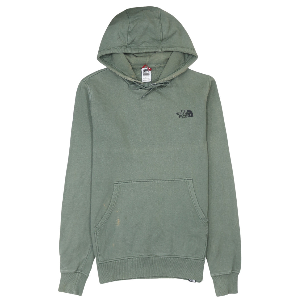 This The North Face men’s pullover hoodie offers dependable everyday comfort and the practical style the brand is renowned for. Crafted in a classic green hue, this hoodie is made from 100% cotton, providing a soft, breathable feel ideal for layering in cooler weather or wearing on its own during mild seasons. The fleece-type interior fabric enhances warmth without adding bulk, perfect for daily wear, outdoor walks, or weekend relaxation. Featuring a drawstring hood, ribbed cuffs and hem, and a spacious front kangaroo pocket, it blends utility with style. The subtle black logo on the chest and back completes the look with a touch of iconic branding. Sized in XS for a regular fit, it’s designed for men who prefer a streamlined but comfortable silhouette. Though in good used condition, minor staining near the lower front pocket doesn’t detract from its overall appeal or durability. Whether you’re heading outdoors, lounging in comfort, or on the go, this hoodie’s versatile design makes it a staple in any wardrobe. Effortlessly matched with jeans, joggers, or outdoor trousers, this premium quality piece demonstrates why The North Face continues to be a trusted name in reliable casualwear. A perfect pick for anyone seeking lasting comfort, practicality, and timeless casual style in a wardrobe essential.