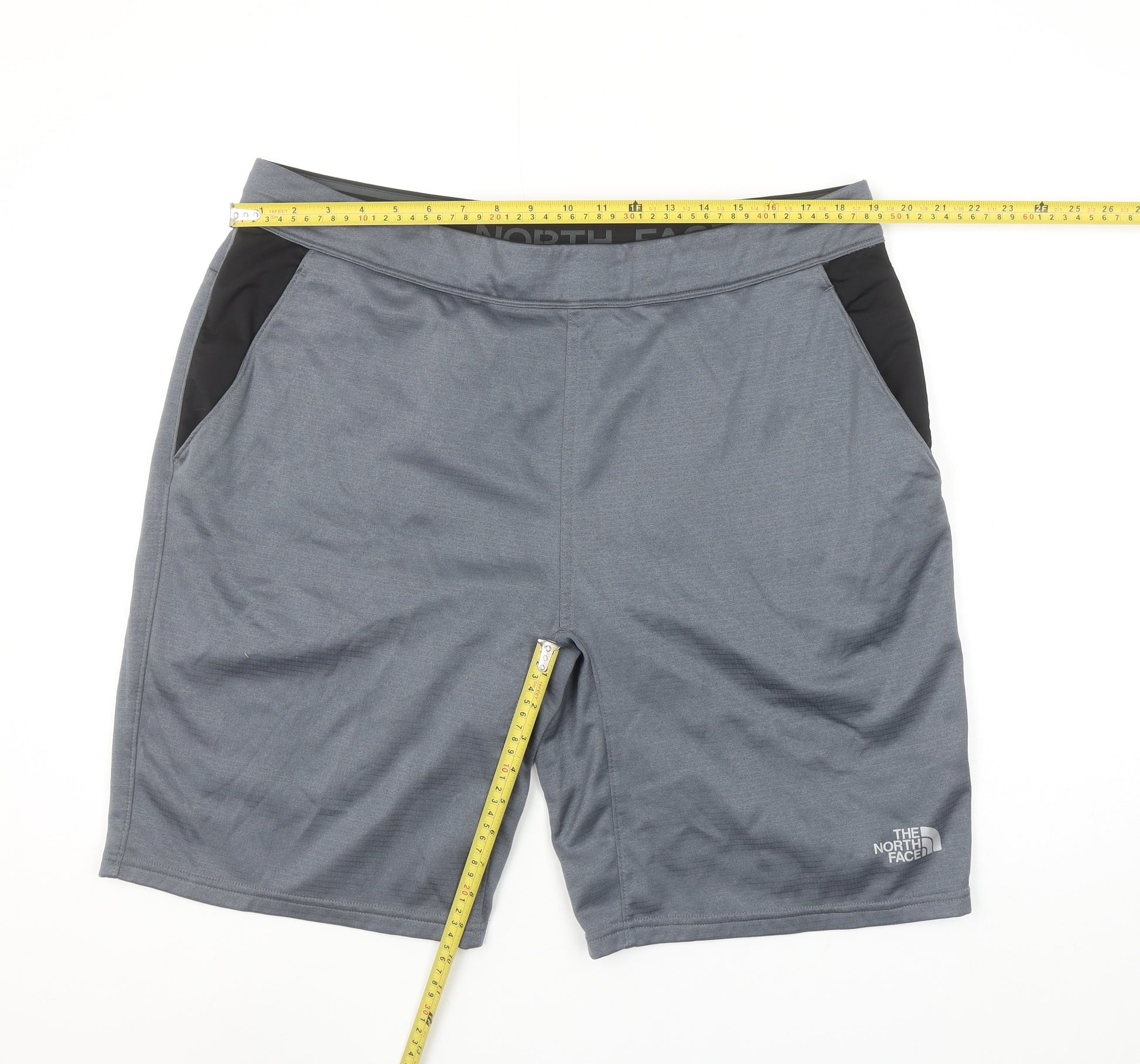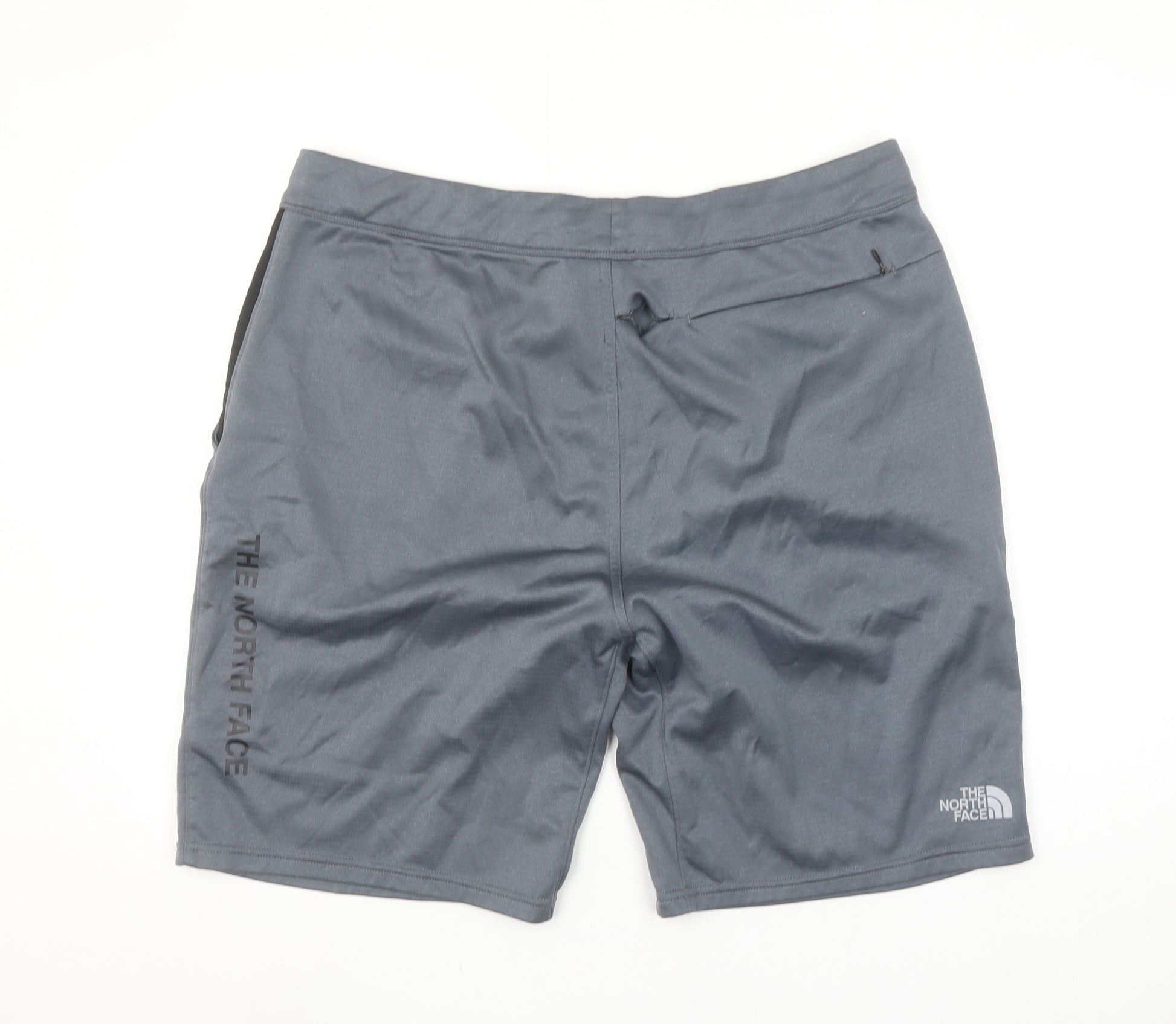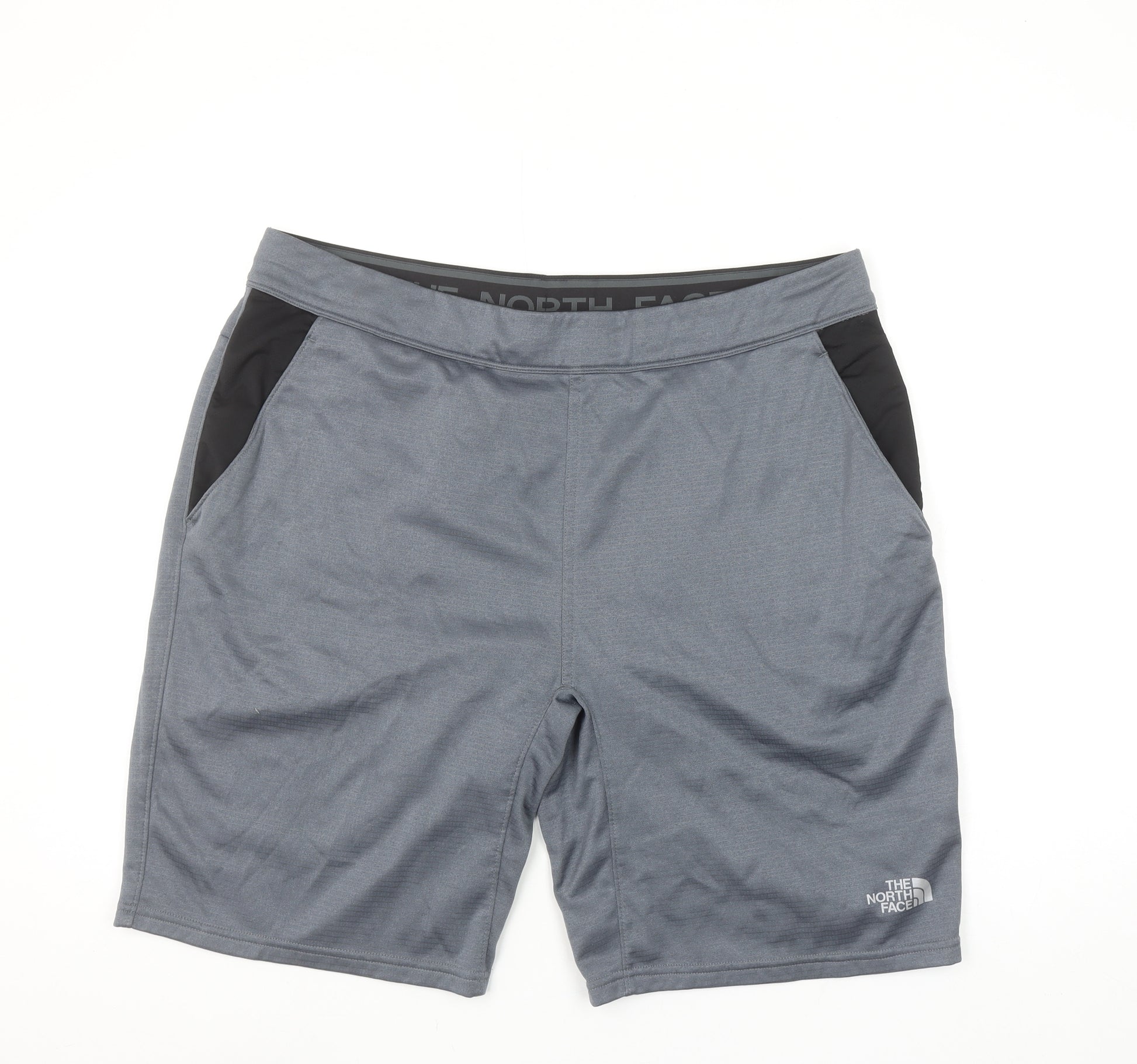 Stay active and comfortable with these The North Face men’s athletic shorts, crafted for performance and everyday wear. Designed in a versatile grey shade with a clean, modern silhouette, these shorts feature a lightweight polyester and elastane construction that offers outstanding breathability and stretch. Ideal for gym sessions, running, or casual walks, the moisture-wicking fabric keeps you cool and dry during workouts while providing all-day comfort. The elastic waistband ensures a secure fit and freedom of movement, making these shorts practical and stylish for high-intensity training or relaxed leisure time. Functional side pockets provide added convenience for storing small essentials, and the subtle North Face logo detailing reinforces their quality performance heritage. Perfect for summer and spring wear, these shorts combine technical design with everyday versatility, allowing you to transition seamlessly from training to downtime. Although previously used, they’re still in good wearable condition with one small flaw noted at a rear seam, reflected fairly in price. A smart, durable choice for the modern active man seeking reliable performance wear from a trusted brand.