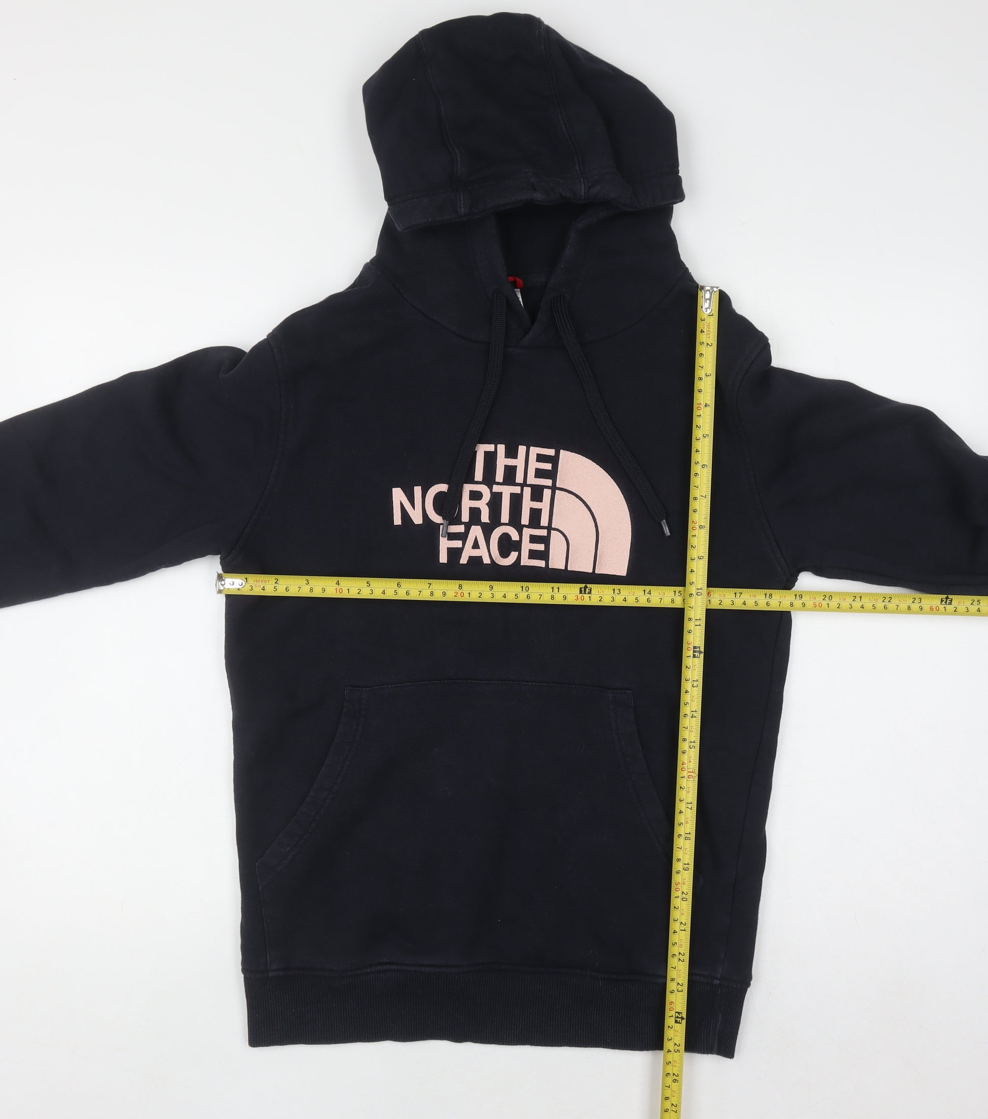 Stay comfortable and stylish with this The North Face women's black pullover hoodie, ideal for casual wear or outdoor activities. Crafted from 100% cotton, the hoodie provides a soft and breathable feel, making it suitable for year-round use. Its regular fit offers an easygoing silhouette, while the classic crew neck and long sleeves ensure warmth and comfort during chilly days. The bold The North Face logo across the chest adds a signature touch that stands out effortlessly. Designed with a large front kangaroo pocket and adjustable drawstring hood, this hoodie combines practicality with enduring style. Perfect for layering or wearing solo, it transitions smoothly between active outdoor moments and relaxed indoor lounging. The versatile black colour complements a wide range of outfits, from leggings and joggers to jeans and shorts. Functional yet fashionable, this hoodie reflects The North Face's reliable quality and everyday appeal. Whether you’re off on a weekend adventure, heading to the gym, or embracing a laid-back day at home, this cotton pullover will keep you cosy without sacrificing polish. With its resilient cotton jersey fabric, machine washable care, and minimal signs of prior wear, it delivers both durability and long-lasting comfort. Add this must-have staple to your collection for easy, everyday layering that never goes out of style.