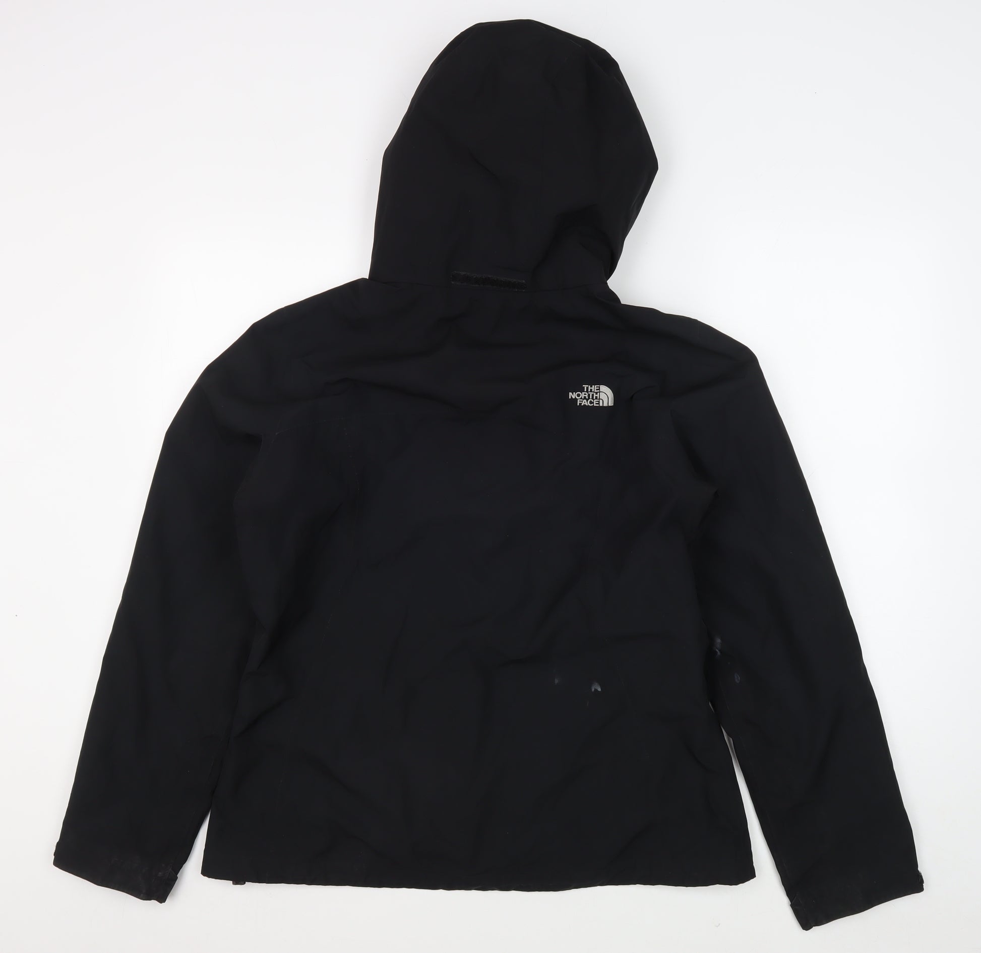Stay ahead of the elements with this black waterproof jacket by The North Face, designed specifically for women. Crafted from 100% polyester, this mid-length raincoat is perfect for autumn and winter, ensuring you remain dry and comfortable without sacrificing style. The sleek black outer shell is both functional and fashion-forward, while the lightweight construction ensures ease of movement and all-day wearability. Ideal for outdoor adventures or casual outings, this jacket features a secure zip closure and convenient zipped pockets, providing ample space for your essentials. The adjustable hood offers extra protection against unexpected downpours, making this garment a versatile addition to your wardrobe. Designed for the modern woman, this jacket also comes equipped with subtle branded accents, reinforcing its high-quality construction. It is machine washable, making care and maintenance a breeze. While slightly worn with no original tags, this jacket remains in excellent condition, ready to accompany you on your next adventure. Whether you're hitting the trails or simply enjoying a day out, this jacket promises practical elegance, keeping you warm and dry in unpredictable weather conditions.