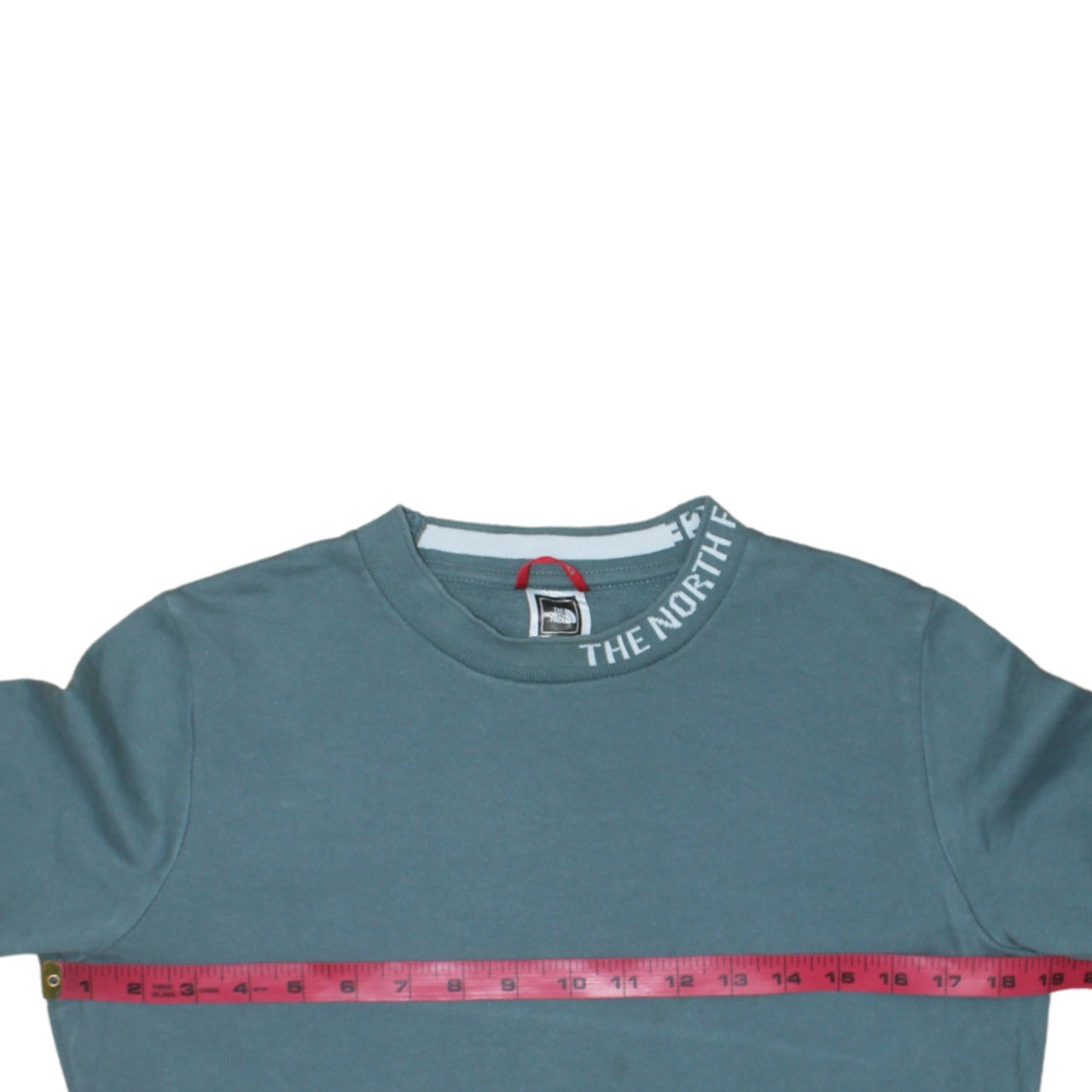 Step out in comfort and casual style with this The North Face women’s crew neck sweatshirt in a muted green tone. Crafted from 100% cotton for a soft, breathable feel, this pullover sweatshirt is perfect for everyday wear or relaxed outdoor adventures. The simple, clean design is accented with signature ‘The North Face’ logo detailing at the neckline and back, adding a subtle branded touch without overwhelming the minimalist aesthetic. Its regular fit and ribbed cuffs and hem ensure both comfort and shape retention, ideal for layering during cooler days or wearing on its own during mild seasons. The long sleeves and crew neckline lend a timeless silhouette that pairs easily with jeans, leggings, or joggers for a laid‑back look. Designed for the practical yet style-conscious woman, it embodies durability and ease of care while maintaining The North Face’s hallmark quality. Suitable for casual, travel, or outdoor use, this lightweight sweatshirt transitions perfectly between spring, autumn, and winter wardrobes. Though gently used with light marks visible upon close inspection, it remains in very good condition and ready for continued wear. Whether you’re heading out for a walk, exploring nature, or relaxing at home, this piece delivers effortless versatility and trusted comfort. A must-have staple from a respected outdoor brand that combines quality materials and simple style for everyday living.