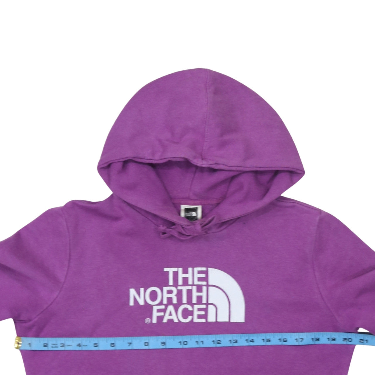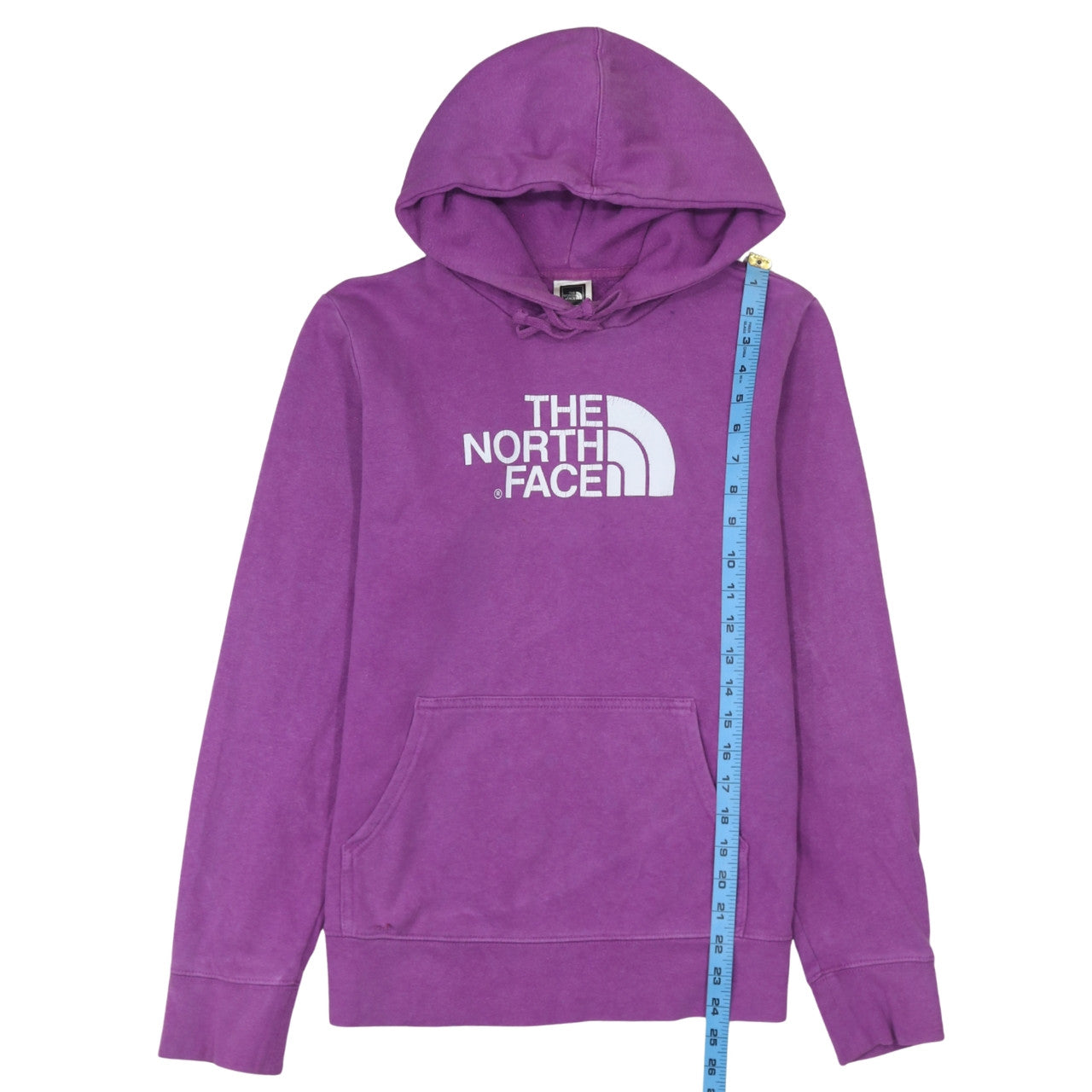 Stay warm and stylish with this vibrant purple women's hoodie from The North Face. Crafted with comfort and practicality in mind, this classic pullover hoodie is made from a soft cotton and polyester fleece blend that delivers warmth and durability without feeling heavy. The fleece interior provides exceptional cosiness for everyday wear, making it ideal for cooler days or layering under a jacket during outdoor adventures. Featuring The North Face's signature logo boldly printed across the chest, this hoodie perfectly balances casual style with a sporty edge. The hoodie includes a functional drawstring hood, ribbed cuffs, and hem for a secure fit, while the large kangaroo pocket adds practicality and a laid-back look. Designed in a flattering regular fit, it’s versatile enough for a casual day out, a brisk walk, or your next gym session. The lightweight fleece fabric ensures all-day comfort, while its minimal design makes it easy to pair with jeans, joggers, or leggings for an effortlessly relaxed outfit. In very good pre-owned condition, this piece shows only minor signs of wear, with a small mark near the pocket that doesn’t detract from its overall appeal. Ideal for autumn, winter, or spring, this hoodie is perfect for an active lifestyle and anyone who appreciates quality outdoor-inspired clothing. With its reliable craftsmanship and bold colourway, this hoodie embodies The North Face’s commitment to quality and adventure-ready fashion. Whether you’re heading for a weekend walk, lounging at home, or running errands, this purple pullover hoodie is a wardrobe essential that combines warmth, comfort, and style effortlessly. Add a pop of colour to your collection and enjoy the trusted performance and timeless design of The North Face.