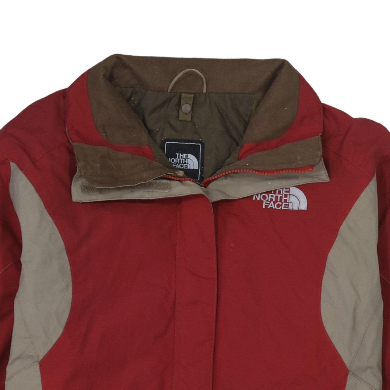 Stay ready for all your outdoor adventures with this stylish red and beige women's jacket from The North Face. Designed in a flattering regular fit and crafted from durable nylon, this mid-length softshell parka offers reliable comfort and protection through both autumn and winter seasons. The water-resistant exterior keeps you dry in light rain, while the fully lined interior ensures warmth during cooler days. Featuring a full zip closure with a button storm flap, practical front pockets, and subtle logo accents, this jacket balances function and smart casual style effortlessly. The adjustable cuffs and high collar help lock in heat and block out the wind, making it ideal for walking, hiking, or commutes in cooler climates. Its minimalist two-tone design in red and beige complements any wardrobe, adding both utility and visual appeal. The North Face is synonymous with quality and resilience, and this piece continues that tradition by providing long-lasting wear with durable performance fabric. Though lightly worn, it remains in very good condition with only slight signs of use on the cuffs, retaining its overall excellent appearance. Machine washable for easy care, this versatile jacket combines function, style, and comfort, making it a perfect addition to any casual or activewear collection. Whether layered over a fleece for chilly days or worn on its own for transitional weather, this North Face jacket delivers dependable warmth and contemporary outdoor styling that suits both city and countryside adventures alike.