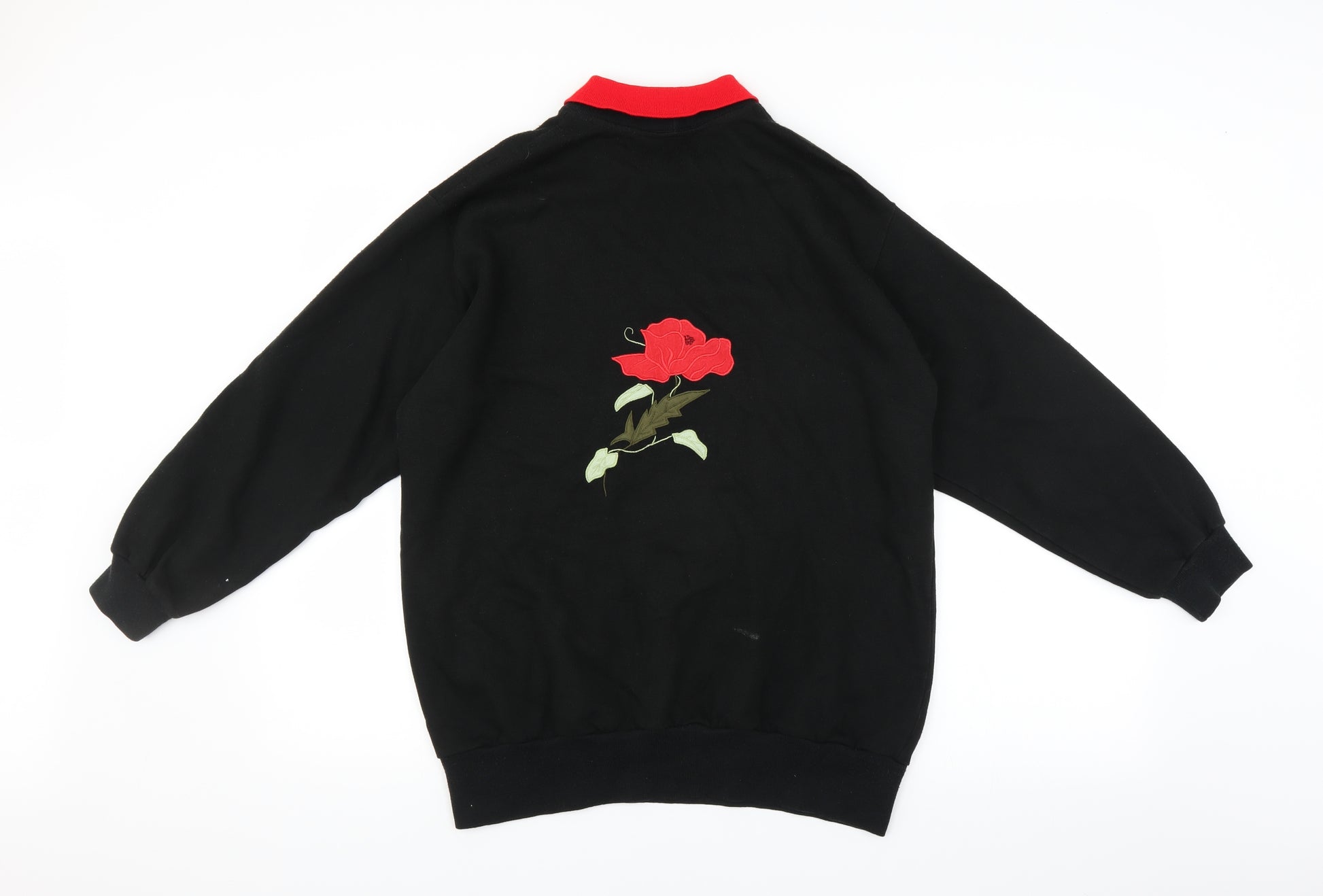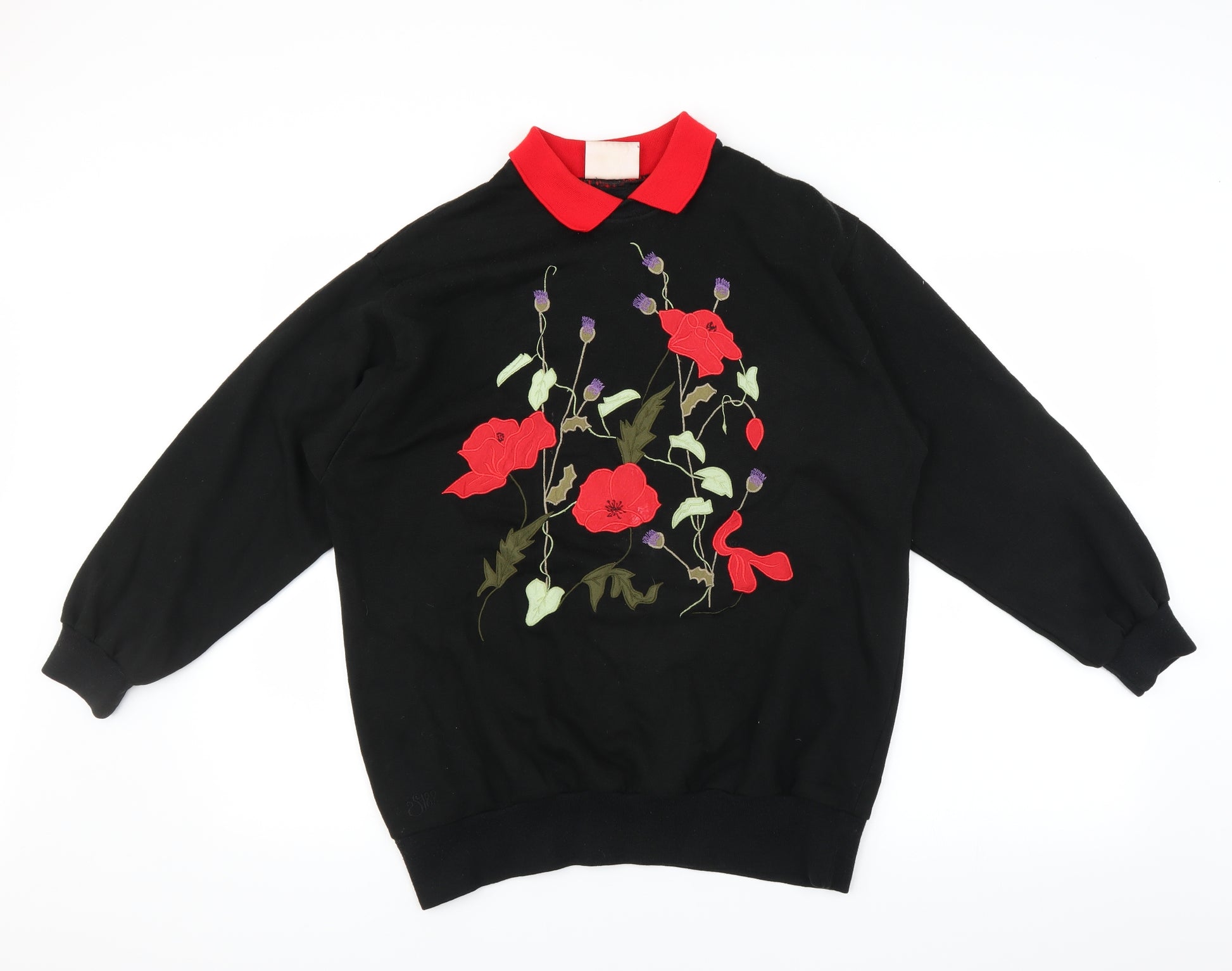 Womens Black Pullover Jumper Size M - Floral embroidery