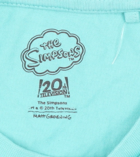 Delight your young TV series fan with this playful blue T-shirt featuring Bart Simpson from The Simpsons. Perfectly tailored for boys aged 11-12 years, this casual short sleeve T-shirt captures Bart's cheeky charm, highlighted in a bold graphic print. Made from 100% cotton, it offers a comfortable and breathable fit that's perfect for everyday wear. This shirt embodies a classic crew neck style, ensuring comfort and ease of wear. With its vibrant cartoon theme, it's perfect for expressing personality while staying casual. Whether worn on its own or layered, this tee is an ideal addition to any young fan's wardrobe. Easy to care for, it’s machine washable for added convenience. Although without original sales tags, it remains in excellent condition, devoid of stains or wear. Perfect for all seasons, pair it with shorts for a summer day or layer under a hoodie for cooler months. Snap up this charming piece for just £8.00 and let your child showcase their love for The Simpsons in style.