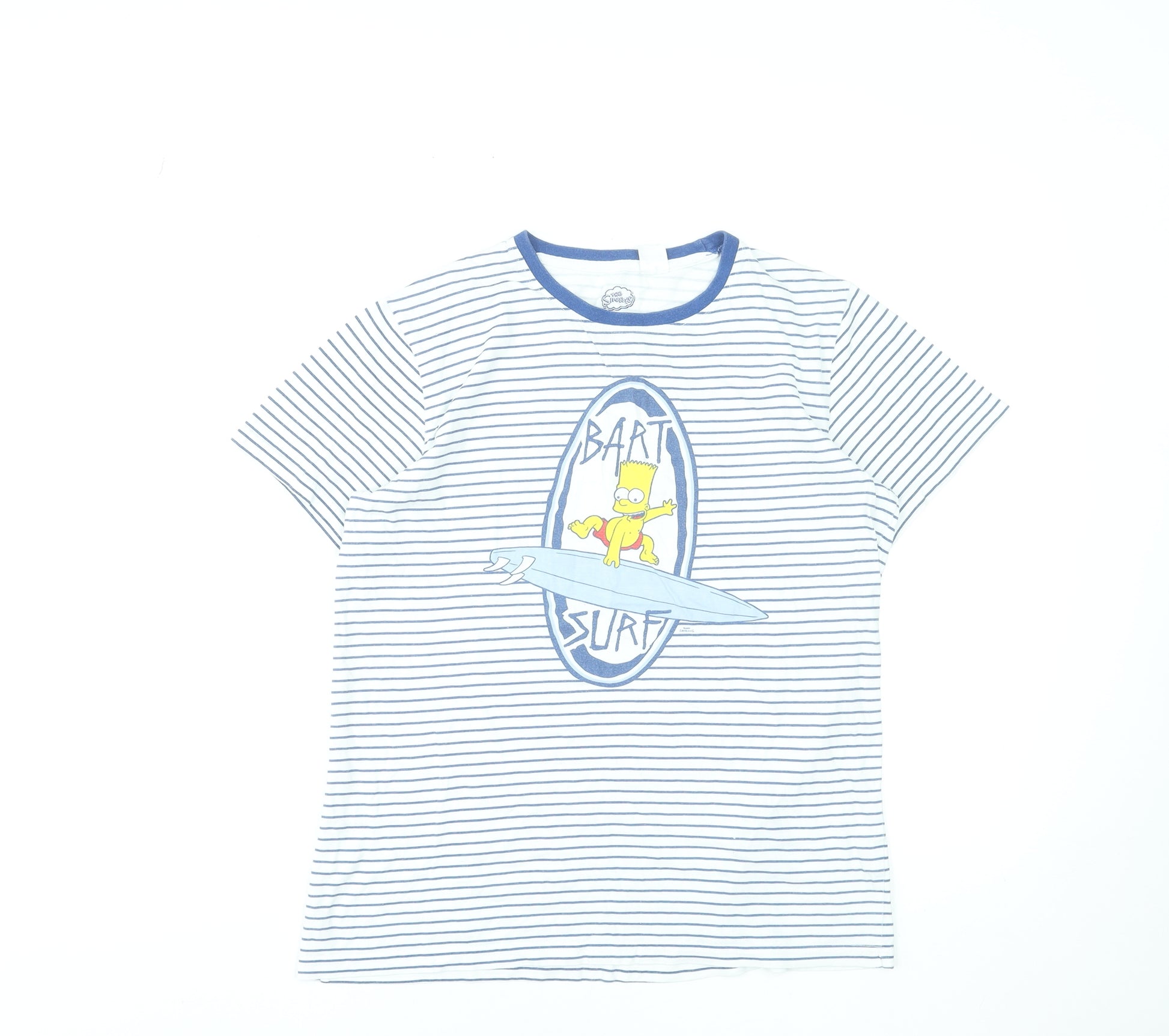 Girls Blue Striped Bart Surf T-Shirt 14 Years 100% Cotton