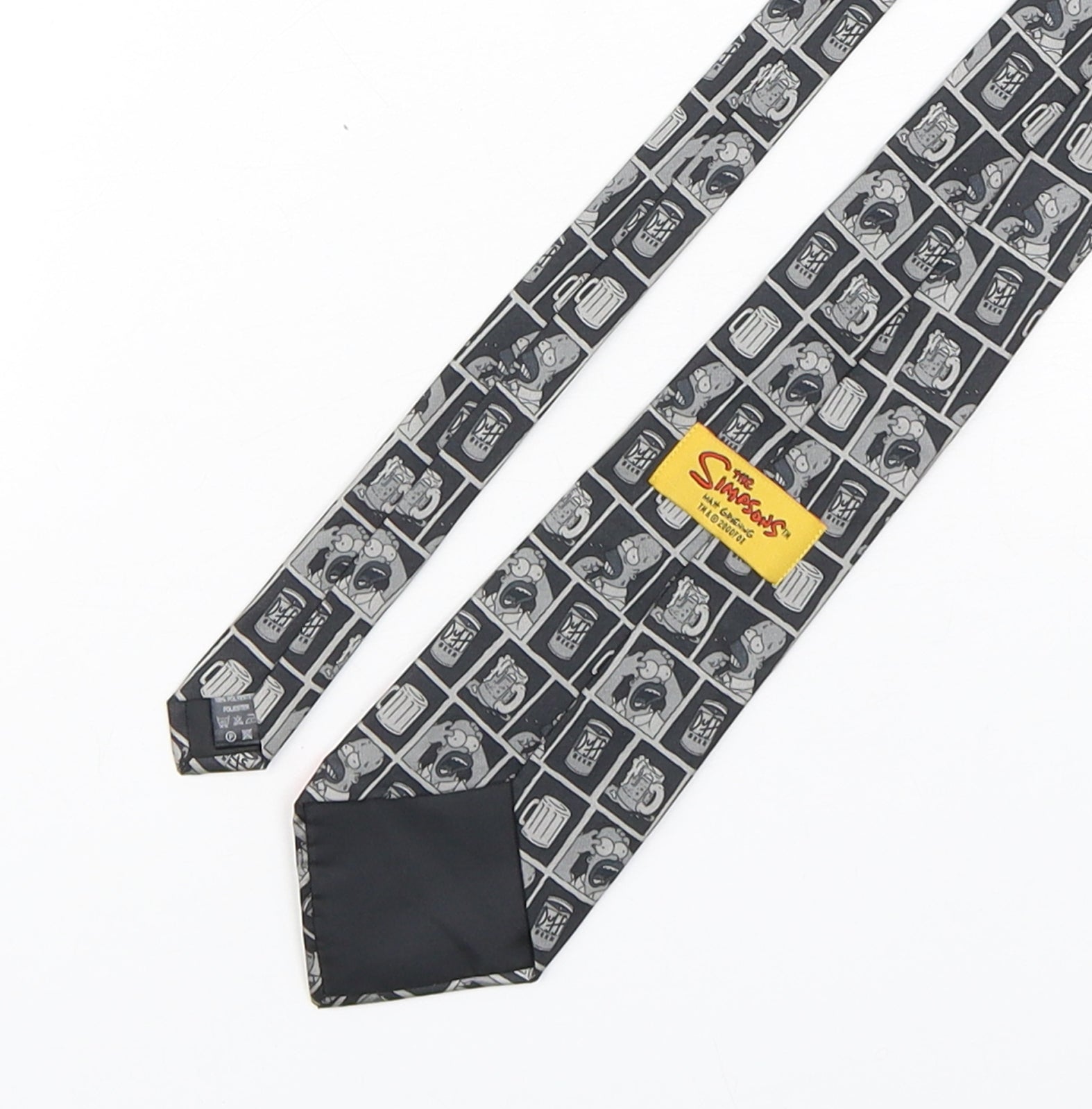 Mens Grey Geometric Polyester Pointed Tie One Size - Homer Simpson