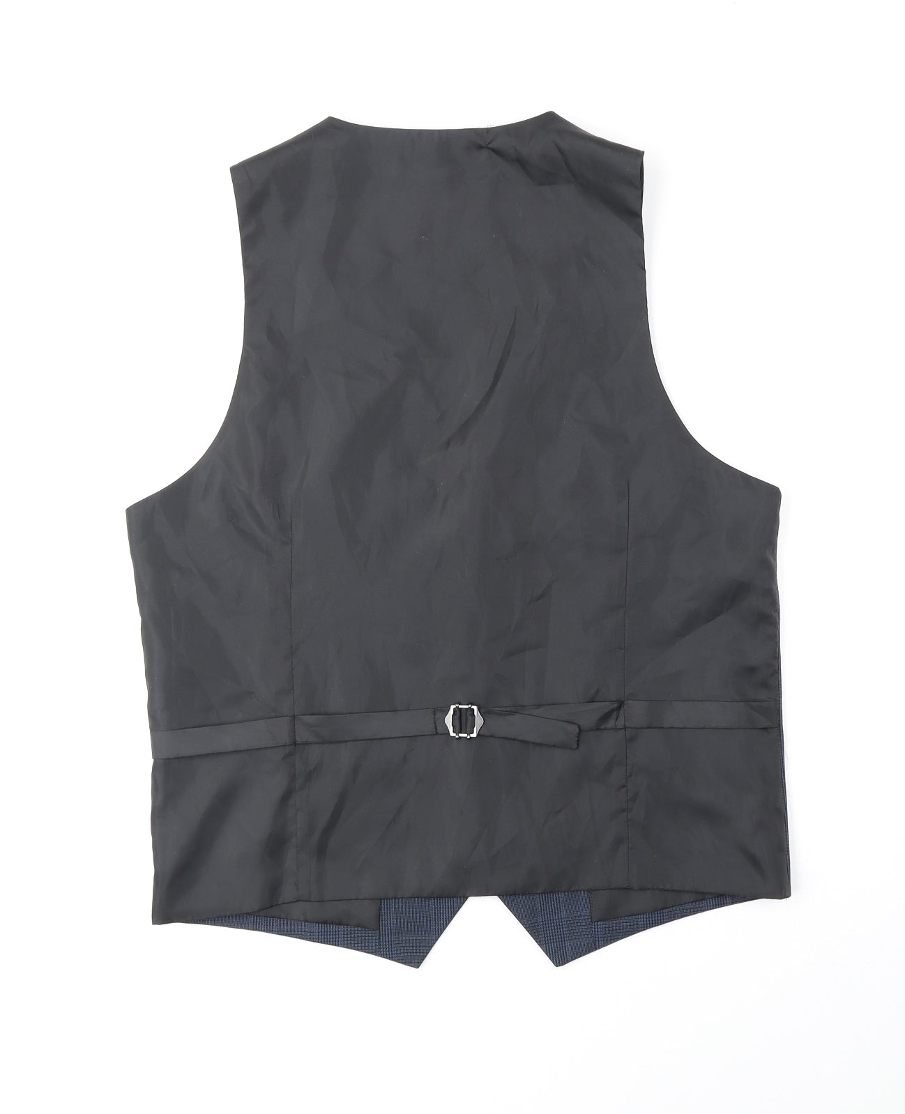 Mens Blue Plaid Polyester Jacket Suit Waistcoat Size 40