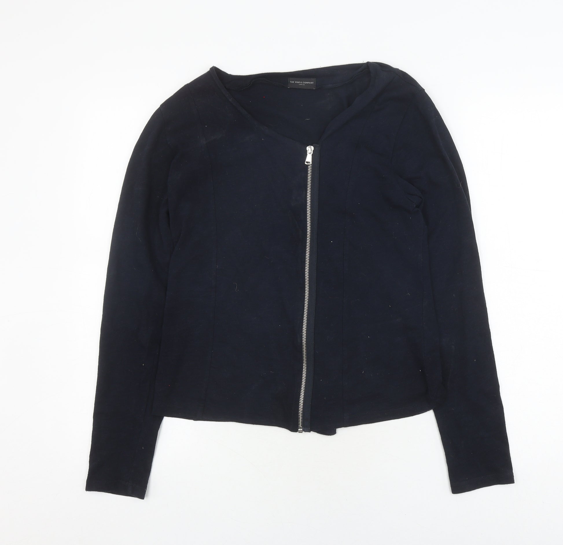 This Women's Cardigan from The White Company is a sophisticated addition to any wardrobe. Crafted from 100% cotton, it offers comfort and breathability, allowing it to be an ideal choice for all seasons. The elegant black hue adds a touch of versatility, making it easy to pair with a variety of ensembles, from formal attire to casual wear. This cardigan features a convenient full-zip closure, making it practical for daily use while adding a touch of modern style. Long sleeves ensure additional warmth, making it perfect for layering during cooler months. Its simplistic design is accentuated with a chic zip accent, bringing an understated elegance to your look. The cardigan is available in a medium size with a regular fit, catering to the needs of many. Although pre-loved, it is in excellent condition with no visible defects, promising a high-quality garment that maintains its original charm and appeal. Elevate your wardrobe with this fabulous find at a reasonable price and enjoy the timeless style that only The White Company can offer.
