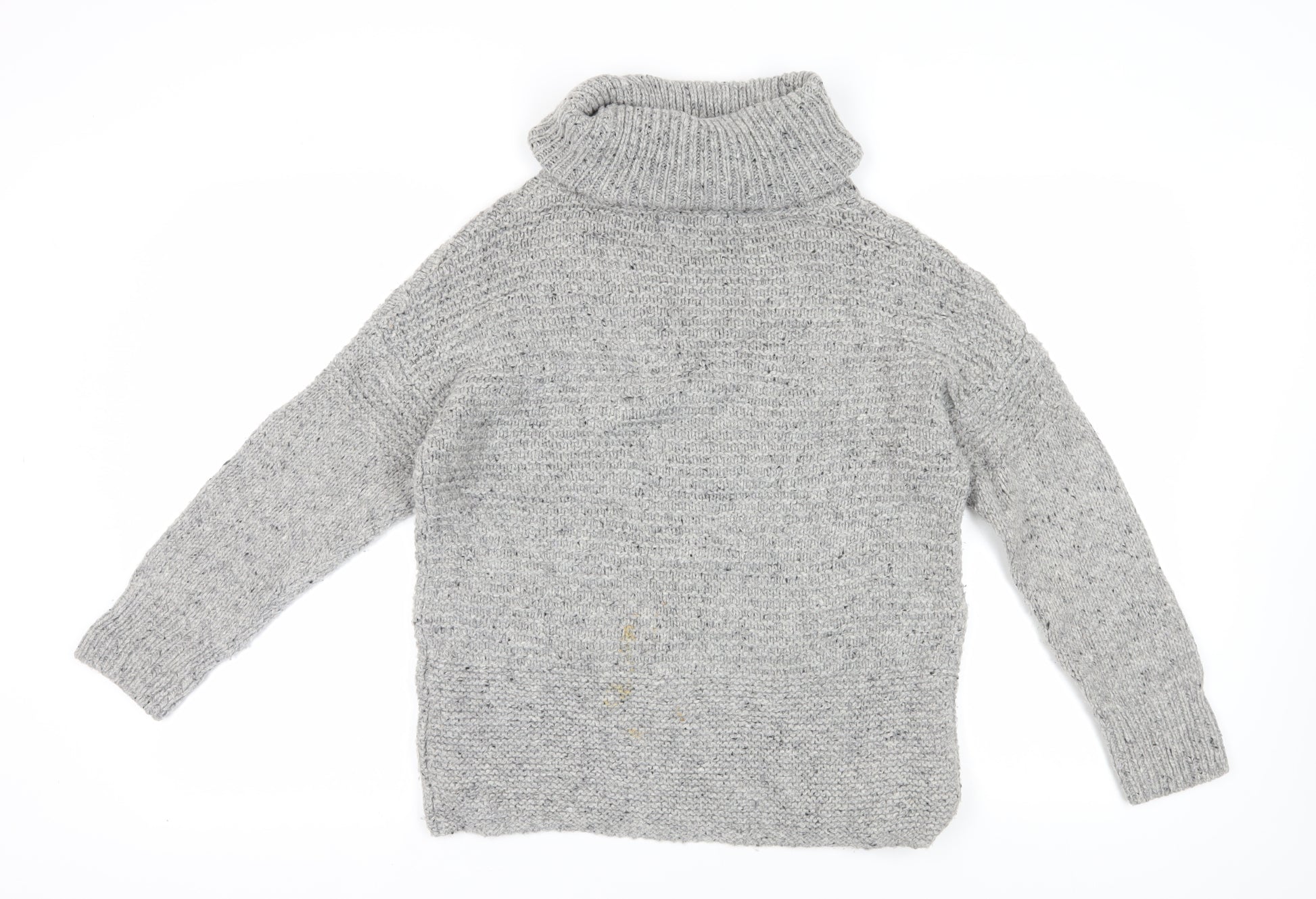 Embrace the colder months with this elegant grey roll neck jumper from The White Company, crafted with the utmost care using 100% Merino wool. The relaxed fit ensures unmatched comfort, perfect for casual autumn or winter outings. The chunky-knit style adds an element of texture, while the heavyweight nature of the fabric provides warmth and snugness. This timeless pullover is designed for women who appreciate both style and comfort. A staple for any wardrobe, this jumper pairs effortlessly with jeans or skirts, making it a versatile piece for many occasions. Note: Slight discolouration is present, reflected in pricing. Hand wash only to maintain the luxurious texture.