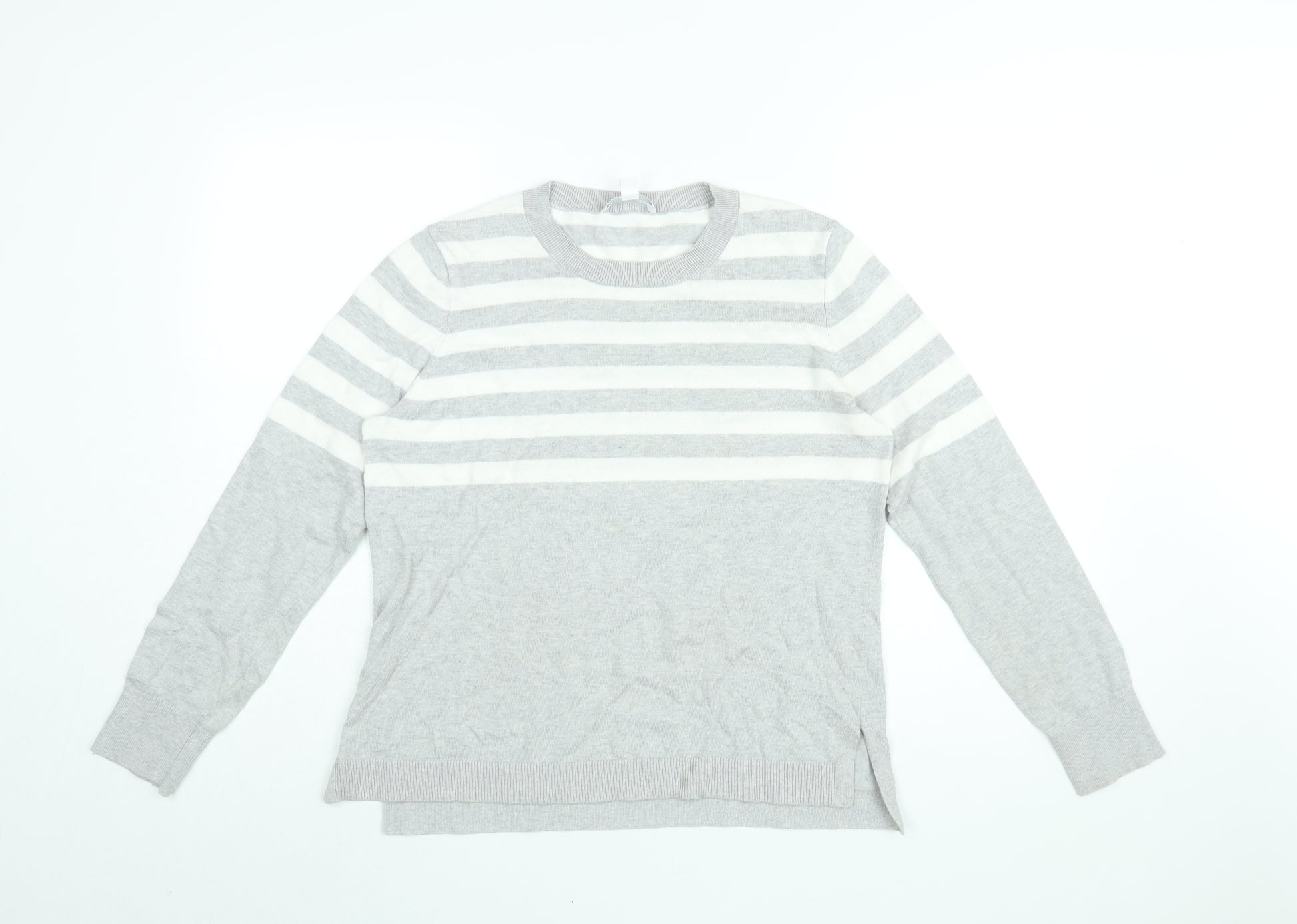 Womens Grey Round Neck Striped Cotton Pullover Jumper Size 10