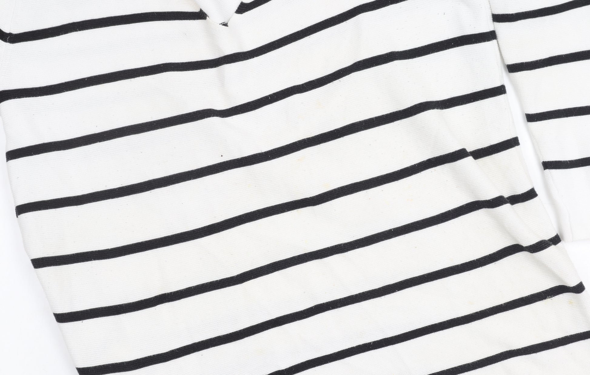 Elevate your everyday style with this elegant striped pullover jumper from The White Company. Tailored for women and designed to fit UK size 16, this casual yet sophisticated jumper is perfect for a variety of occasions. Featuring a classic V-neckline and long sleeves, it boasts a timeless black and white striped pattern. Crafted from 100% cotton, this knit jumper ensures comfort and breathability, making it ideal for all-day wear. The fabric type and easy machine washable care add convenience, while the high-quality material promises durability. Whether you're dressing for a casual lunch date or simply want a comfortable addition to your wardrobe, this pullover jumper fits the bill. Despite being pre-loved, it remains in excellent condition with only light signs of wear, ready to provide style and comfort to its next owner. Don't miss the chance to own this versatile and stylish piece that defines understated elegance. Priced competitively, it's a must-have addition to any fashion-forward wardrobe.