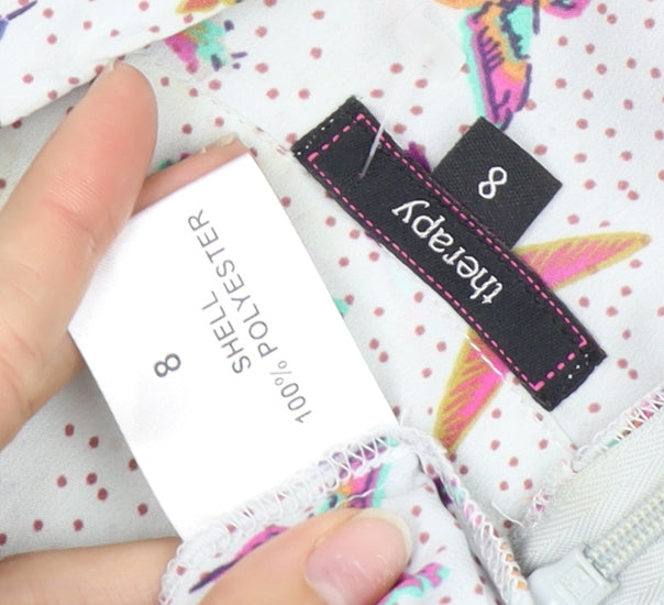 Embrace vibrant style with this Therapy women's dress, featuring a playful multicolour design and captivating bird motif. Tailored for comfort, this size 8 dress offers a flattering fit with its woven polyester fabric, ideal for breathable wear during spring and summer days. The lightweight and casual nature of the dress makes it a perfect choice for informal occasions or leisurely outings, ensuring you remain stylish and at ease. Designed with a practical zip closure at the back for easy wear, the dress also showcases a flattering round neck and cap sleeves that add a delicate charm to the overall look. With its cheerful palette and unique animal-themed design, this dress is a delightful addition to any wardrobe, promising to become your go-to piece for effortless style.