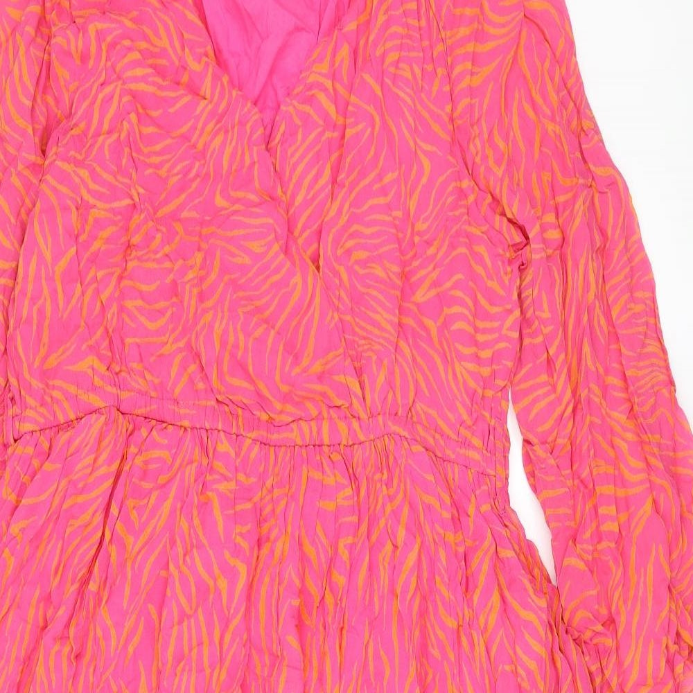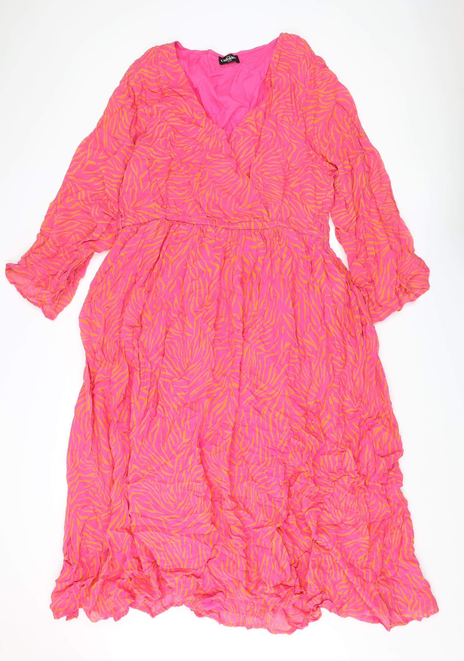 Womens Pink Geometric Viscose A-Line Size 24 V-Neck Pullover