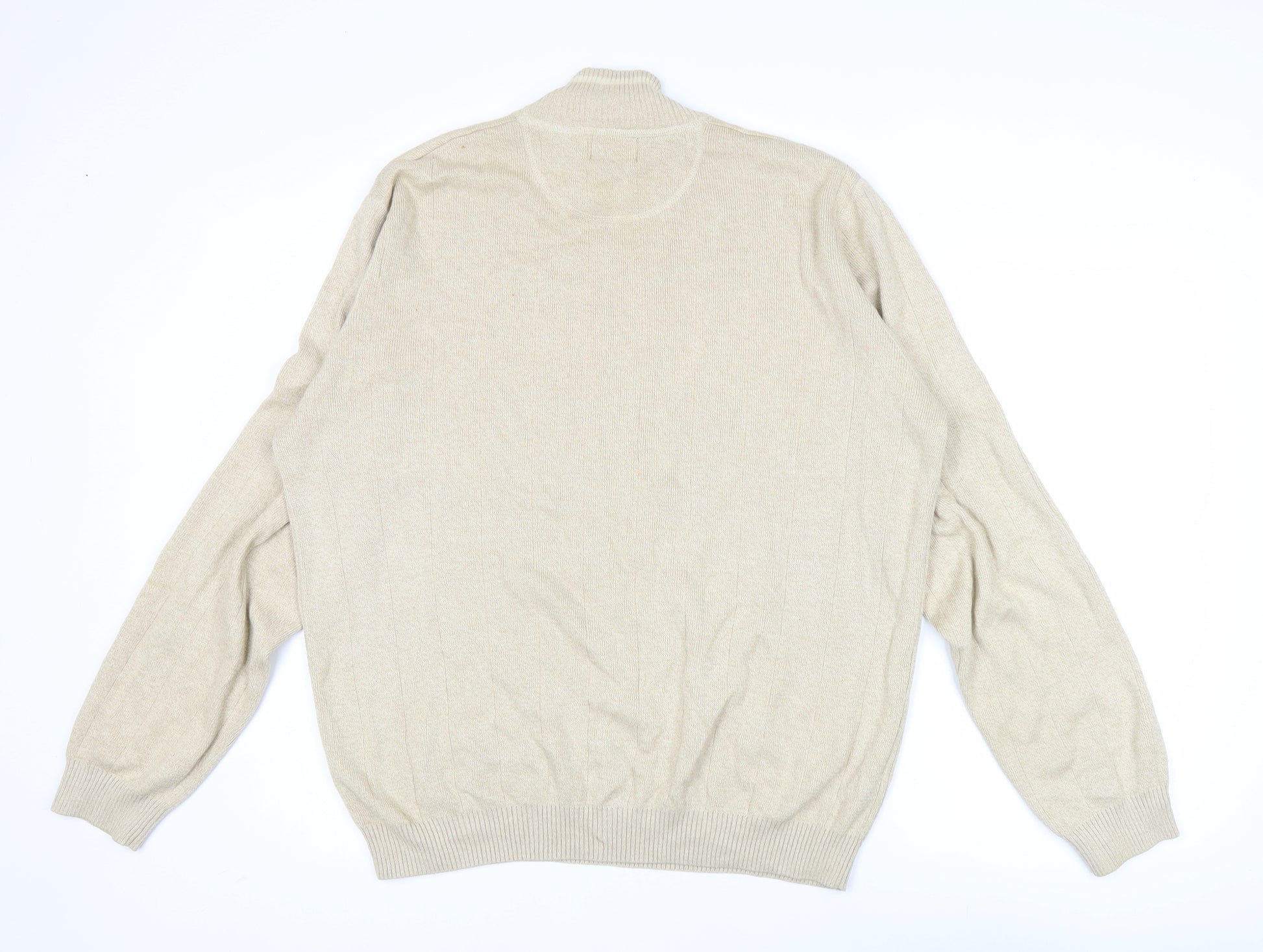 Step up your knitwear game with this Thomas Nash men’s jumper, crafted from 100% cotton for all-day comfort and breathability. Designed in a timeless beige shade, this versatile pullover is ideal for layering throughout the cooler months while also being lightweight enough to see you through spring. Featuring a mock neck for added warmth and a refined finish, it strikes a great balance between smart and casual styling, making it suitable for a range of occasions. Its long sleeves and ribbed hem provide a regular fit, ensuring ease of wear without compromising on style.This understated jumper is a great wardrobe staple, easy to pair with jeans for a casual weekend look, or with chinos and smart shoes for workwear or an evening out. The neutral beige tone guarantees it will easily complement a variety of colours and outfits, offering year-round wearability. The tight-knit structure gives it a smooth appearance, while remaining breathable and soft against the skin thanks to its pure cotton construction.Perfect for casual outings, workwear, or simply staying warm in comfort, this piece is all about understated versatility. The Thomas Nash label ensures a touch of quality and sophistication at an affordable price point, making it an excellent choice for everyday style.Please note, the jumper remains in good pre-owned condition and is machine washable for added convenience. There is a visible mark on one sleeve as shown, which has been reflected in the competitive price. A trusty piece of knitwear that delivers both comfort and functionality, this jumper is ready to become a reliable addition to your wardrobe. Whether you are dressing it up or down, it offers effortless style and practicality.If you are searching for an affordable, comfortable, and easy-to-style knitwear option, this Thomas Nash cotton mock neck jumper ticks all the boxes. Don’t miss out on this versatile wardrobe essential at great value.
