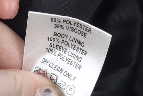 Upgrade your wardrobe with this classic Thomas Nash Men's Blazer in sleek black. Perfectly tailored for a regular fit, this single-breasted jacket features a sophisticated notch lapel style and flattering double-vented back. Ideal for both business and formal occasions, this blazer embodies timeless elegance. Constructed from a durable blend of 65% polyester and 35% viscose, it offers maximum comfort and wearability. Inside, the 100% polyester lining ensures a smooth and comfortable fit. With its two-button front and four-button sleeve accents, this jacket exudes a refined charm. Available in size 44 with a regular length, it suits the modern gentleman looking for style and versatility. Its classic design without any pattern makes it an adaptable piece for various settings, from the office to formal events. This blazer is best cared for through dry cleaning to maintain its quality and appearance. Despite being pre-loved, it maintains excellent condition with no visible signs of wear. Available for a competitive price, it promises to be a smart addition to your collection. Don't miss out on this stylish essential that complements any attire and elevates your look effortlessly.