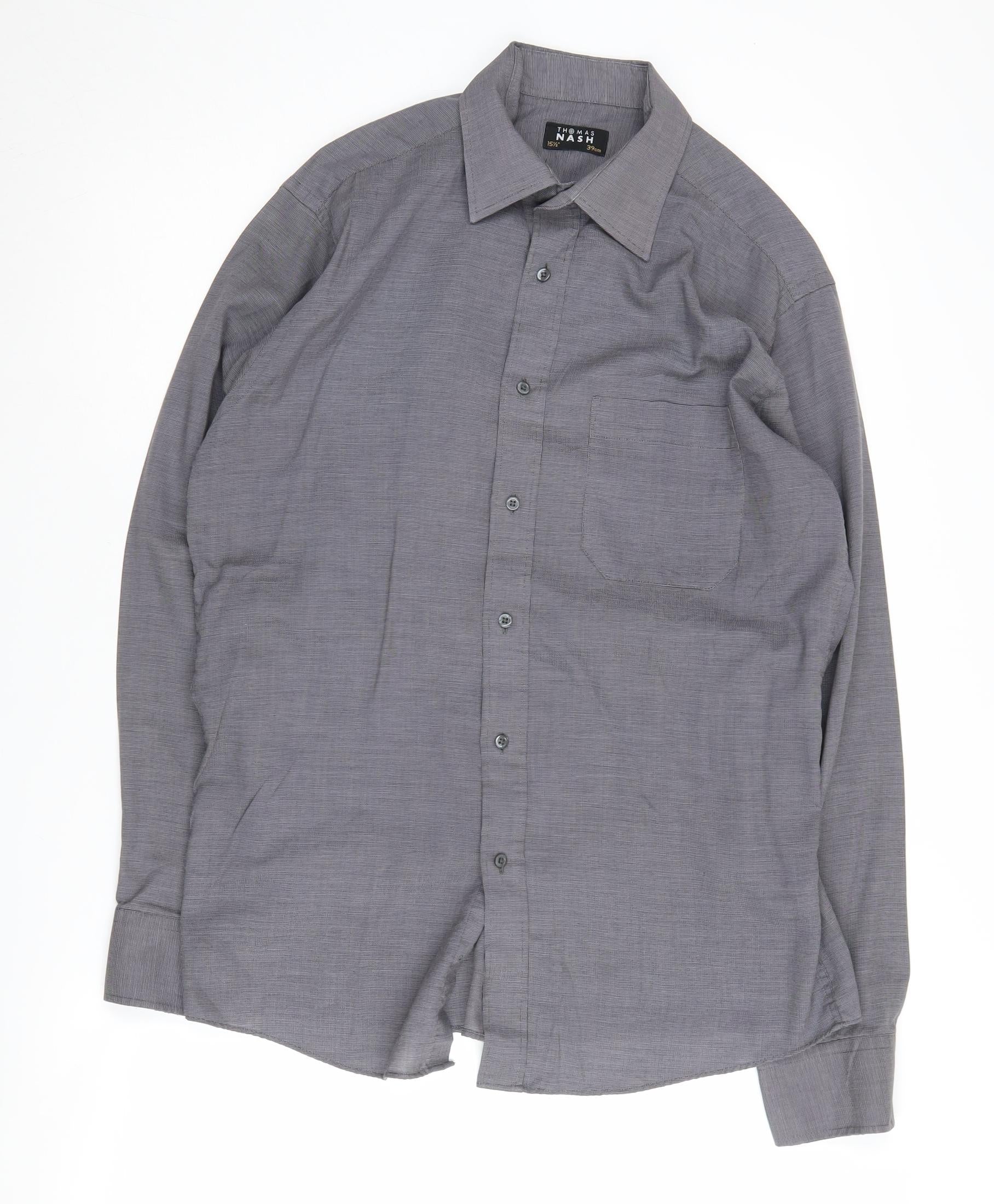 Introducing the Thomas Nash Men's Grey Regular Fit Long Sleeve Shirt, a classic addition to any wardrobe. Crafted for comfort and style, this woven shirt combines a sharp point collar with breathable fabric, making it perfect for any casual occasion. The solid grey colour provides a versatile and timeless aesthetic, suitable for all seasons. Made from a durable blend of 65% polyester and 35% cotton, this button-up shirt offers a comfortable fit and easy maintenance, being fully machine washable. The regular fit and long sleeves ensure a flattering and relaxed silhouette that can be dressed up or down effortlessly. Ideal for day-to-day wear or for layering beneath jackets, this shirt is a must-have essential that combines practicality with a sophisticated look. Whether you're styling it for work or a casual outing, the Thomas Nash shirt offers endless possibilities. Perfect for the modern man seeking a straightforward yet elegant piece to enhance his clothing collection.