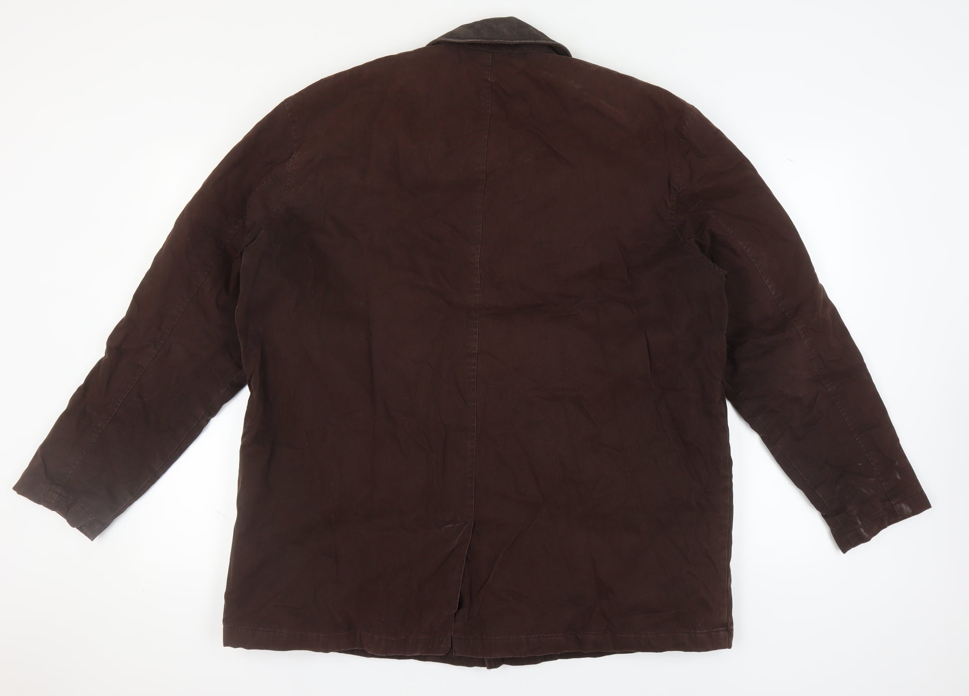 This Thomas Nash coat in a rich brown is an excellent choice for the discerning gentleman seeking both style and comfort. Made entirely from high-quality cotton, this coat provides a leisurely fit, perfect for layering on cooler autumn and winter days. Its classic overcoat style comes with a spread collar that adds a touch of sophistication, while the mid-length design ensures practical coverage and warmth. Equipped with functional pockets, this piece offers convenience without compromising its sleek look. The coat features a button closure, reinforcing its casual yet polished appeal, making it ideal for everyday wear. Though previously owned, it remains in excellent condition, showing only minimal signs of wear, which adds character to its appearance. Perfect for casual outings, this coat complements any wardrobe. With its timeless design and understated elegance, this Thomas Nash piece promises to elevate your style effortlessly.