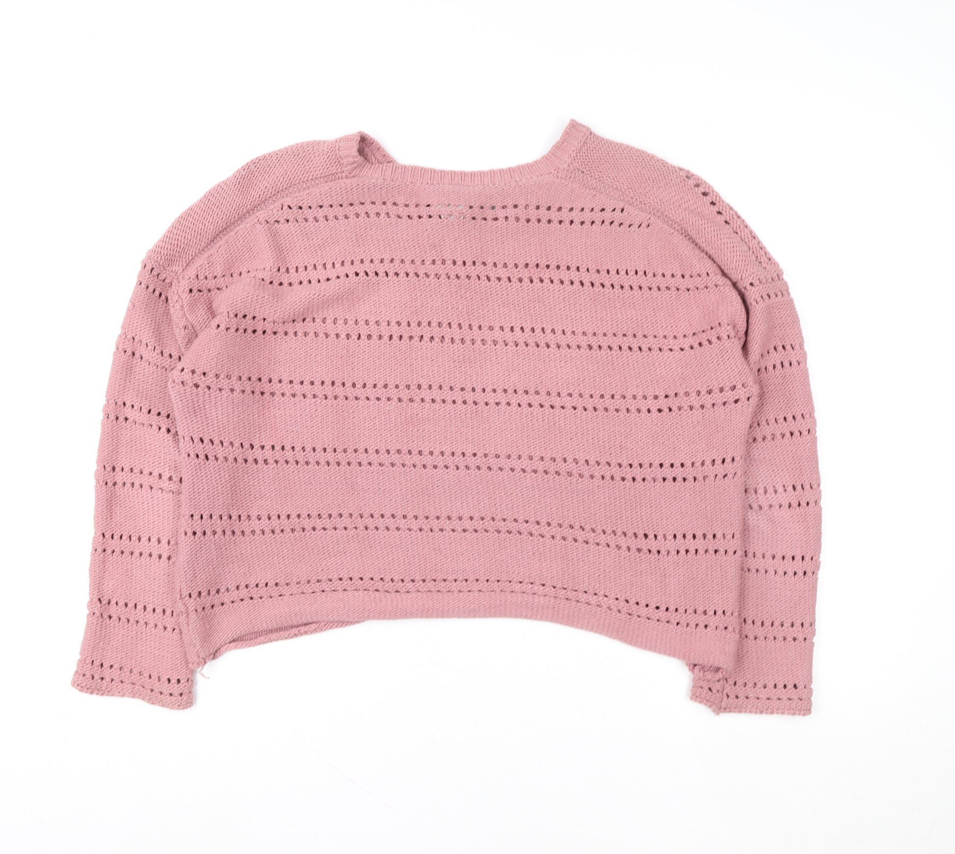 Women Pink Organic Cotton Knitted Pullover Sweater Size 12