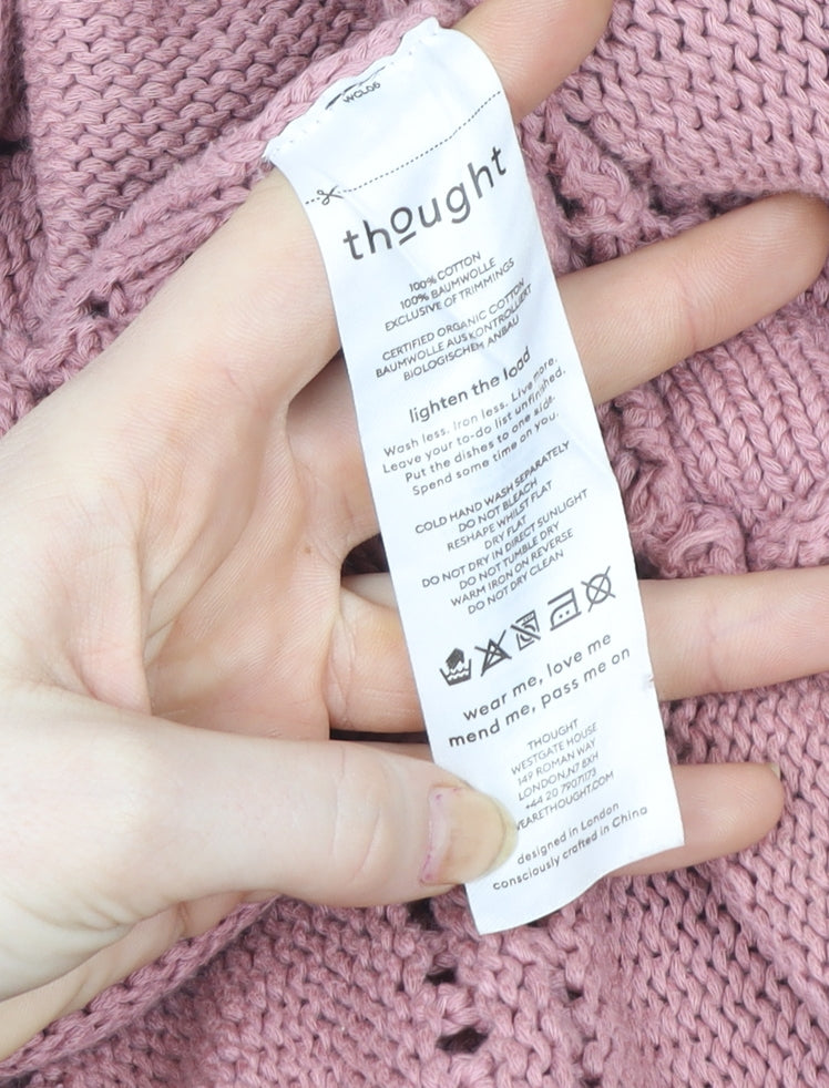 Elevate your everyday wardrobe with this beautifully crafted pink pullover sweater from Thought. Designed for women, this airy open-knit piece combines timeless charm with modern sustainable style. The sweater is made entirely from certified organic cotton, ensuring a breathable and soft texture that feels gentle against the skin. Its natural fibre composition makes it perfect for year-round wear, offering comfort and durability while supporting environmentally conscious fashion choices. The relaxed silhouette provides effortless versatility – ideal for dressing up or down. The delicate openwork knit pattern adds subtle detail, giving this sweater a feminine and elegant appeal without sacrificing comfort. Paired with jeans, a skirt, or layered over a dress, it’s the ultimate choice for casual sophistication. Finished in a pretty muted pink tone, this pullover flatters various skin tones and works perfectly for spring and autumn transitions. The design features long sleeves and a round neckline, keeping you cosy while maintaining an airy look. The organic cotton knit construction ensures the piece remains breathable, lightweight, and easy to care for with gentle washing. This Thought pullover emphasises sustainable craftsmanship, consciously made with attention to ethical standards. Its excellent condition makes it a wonderful addition to a considered wardrobe – offering both comfort and eco-friendly confidence. Whether you’re styling for a relaxed weekend, a day at the office, or enjoying a coastal walk, this piece adapts easily to your lifestyle. Discover the thoughtful difference of eco-conscious design with this soft pink sweater from Thought – effortlessly stylish, comfortable, and kind to the planet.