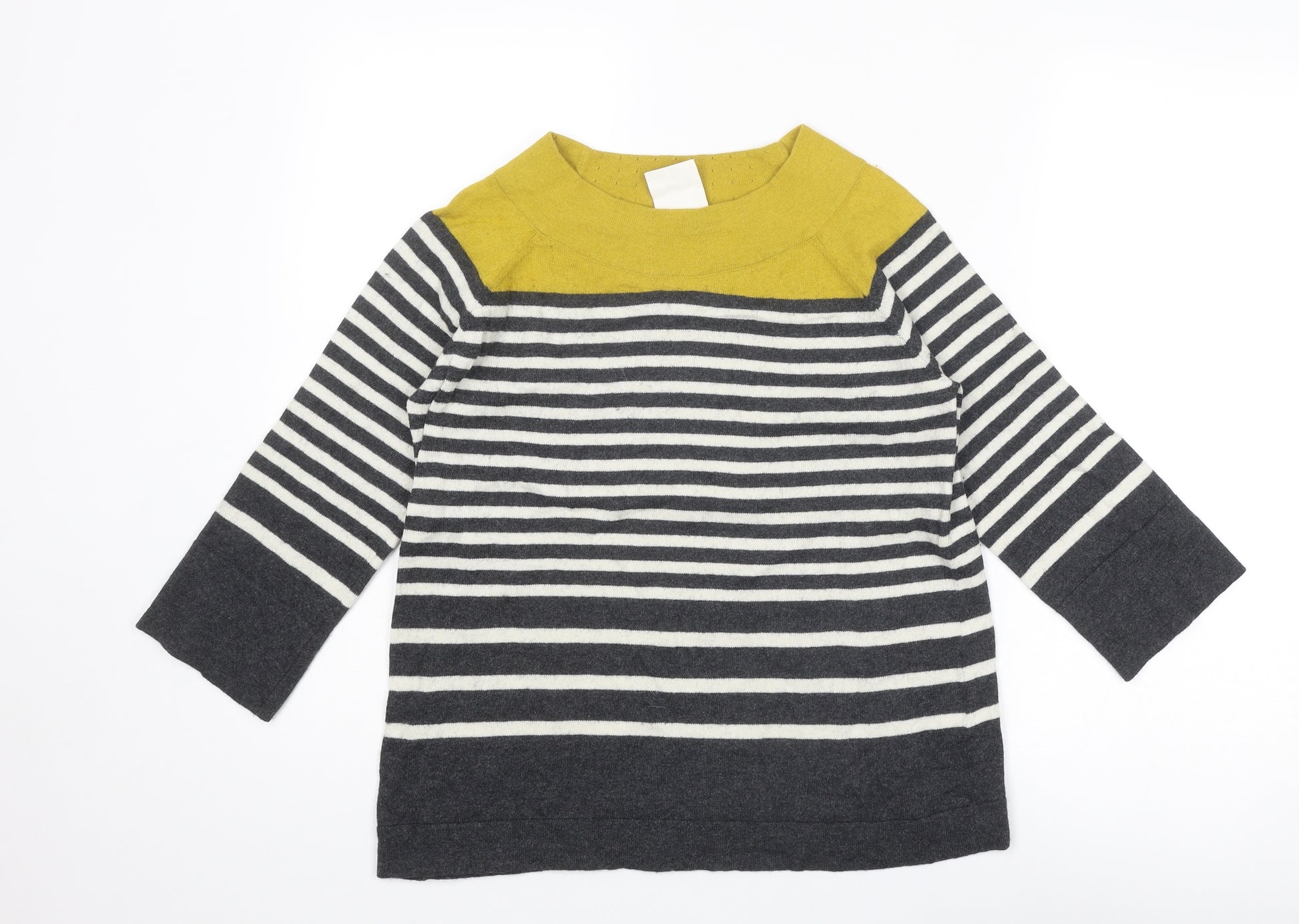 Womens Grey Round Neck Striped Cotton Pullover Jumper Size 10