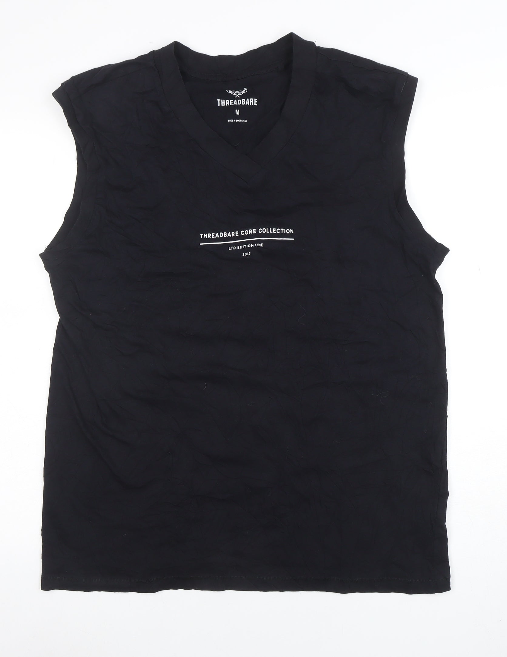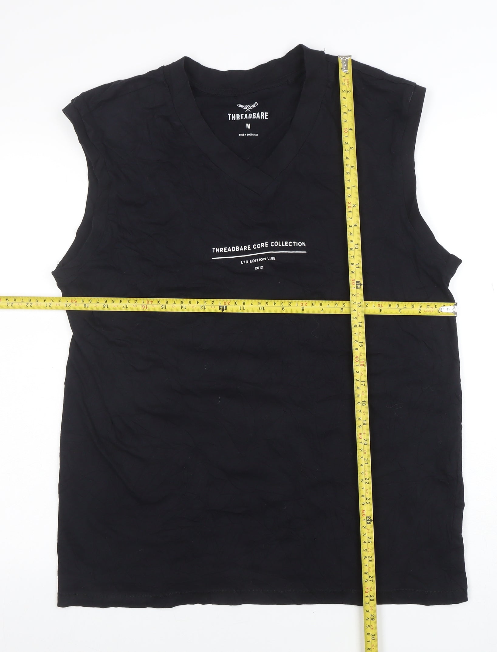 Men's Black Sleeveless V-Neck Graphic Cotton T-Shirt M